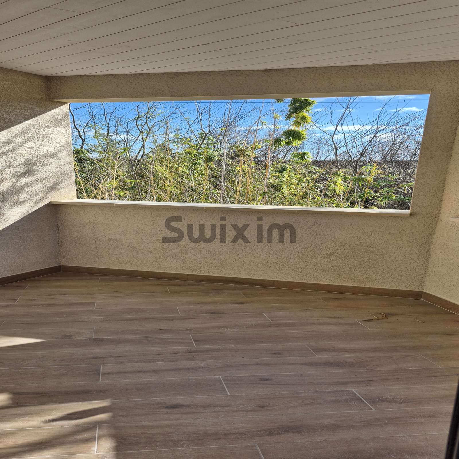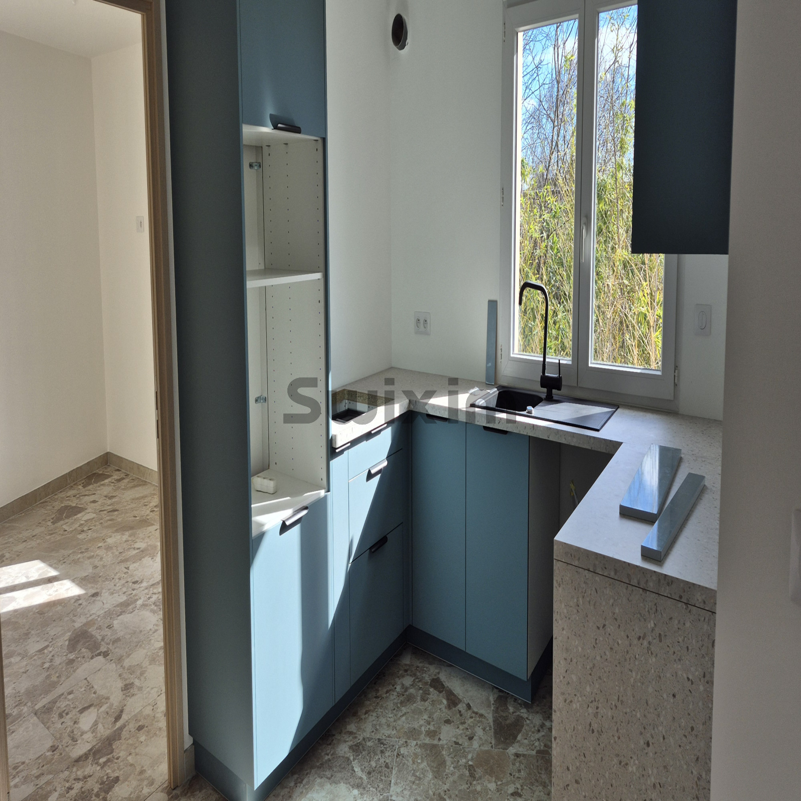 Deux chambres volets electriques, SDE douche à l italienne et double vasque, grande pièce de vie donnant sur terrasse et cuisine ouverte équipée neuve avec plaque et hotte electrique, emplacements pour four, lave vaisselle et lave linge