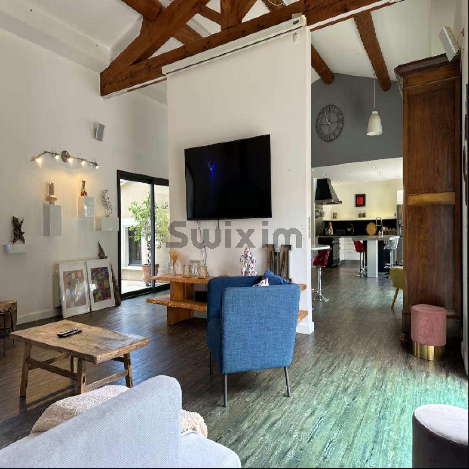 A l'extérieur, vous pourrez profiter d'un grand jardin arboré et d'une piscine pour vos moments de détente. Un bien rare, alliant espace, calme et prestations de qualité.