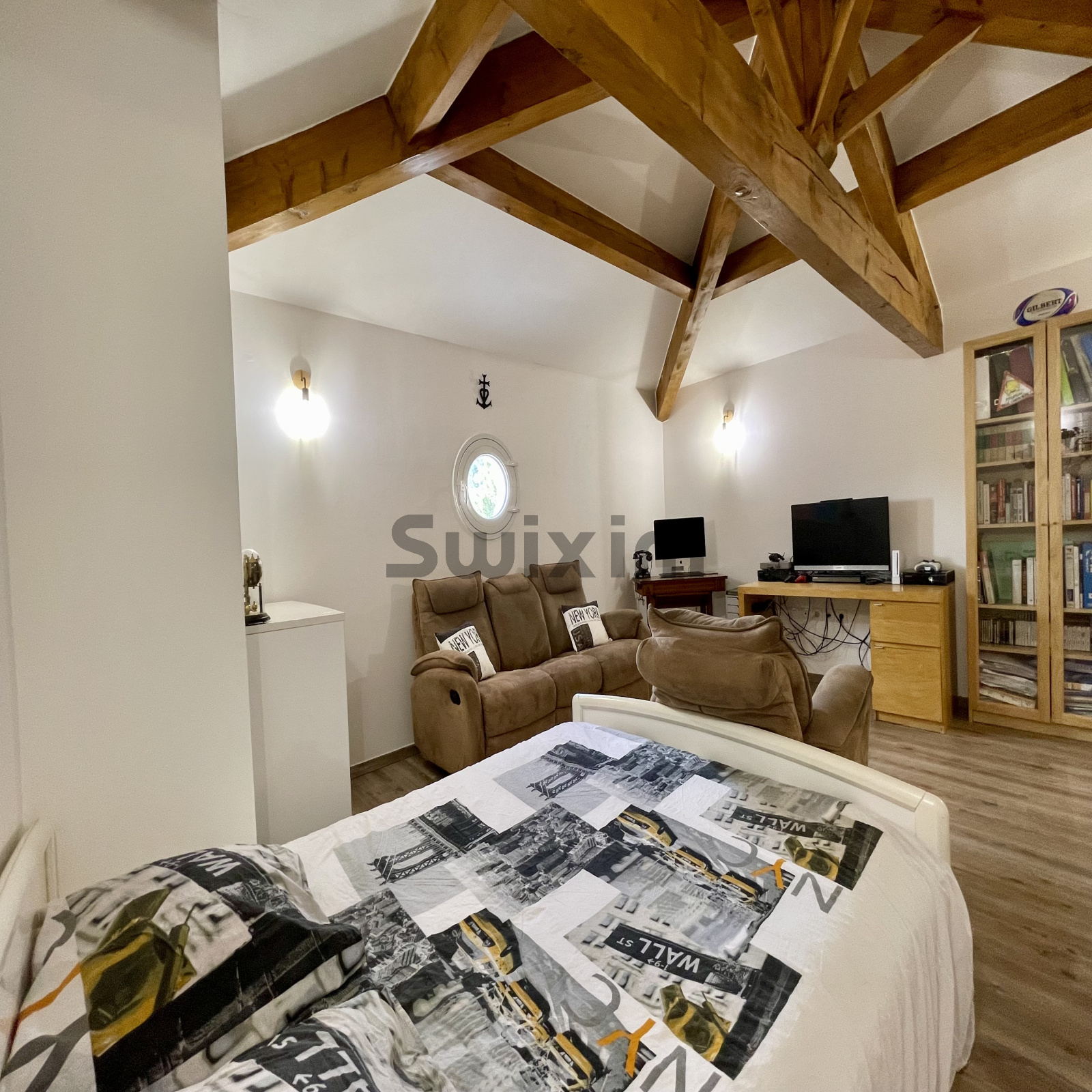 Idéalement positionnée au-dessus de la cuisine, une chambre d'ami sous pente complète ce bien.