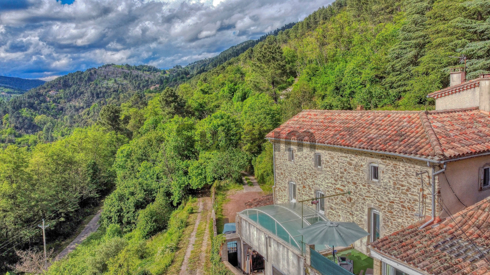 Le bien dispose en Rez-de-Chaussée, de deux grand Séjour/Cuisine et d'un Salon, l'ensemble ouvrant sur une terrasse avec véranda et piscine, vous séduisant par la vue dégagée sur les montagnes Cévenoles