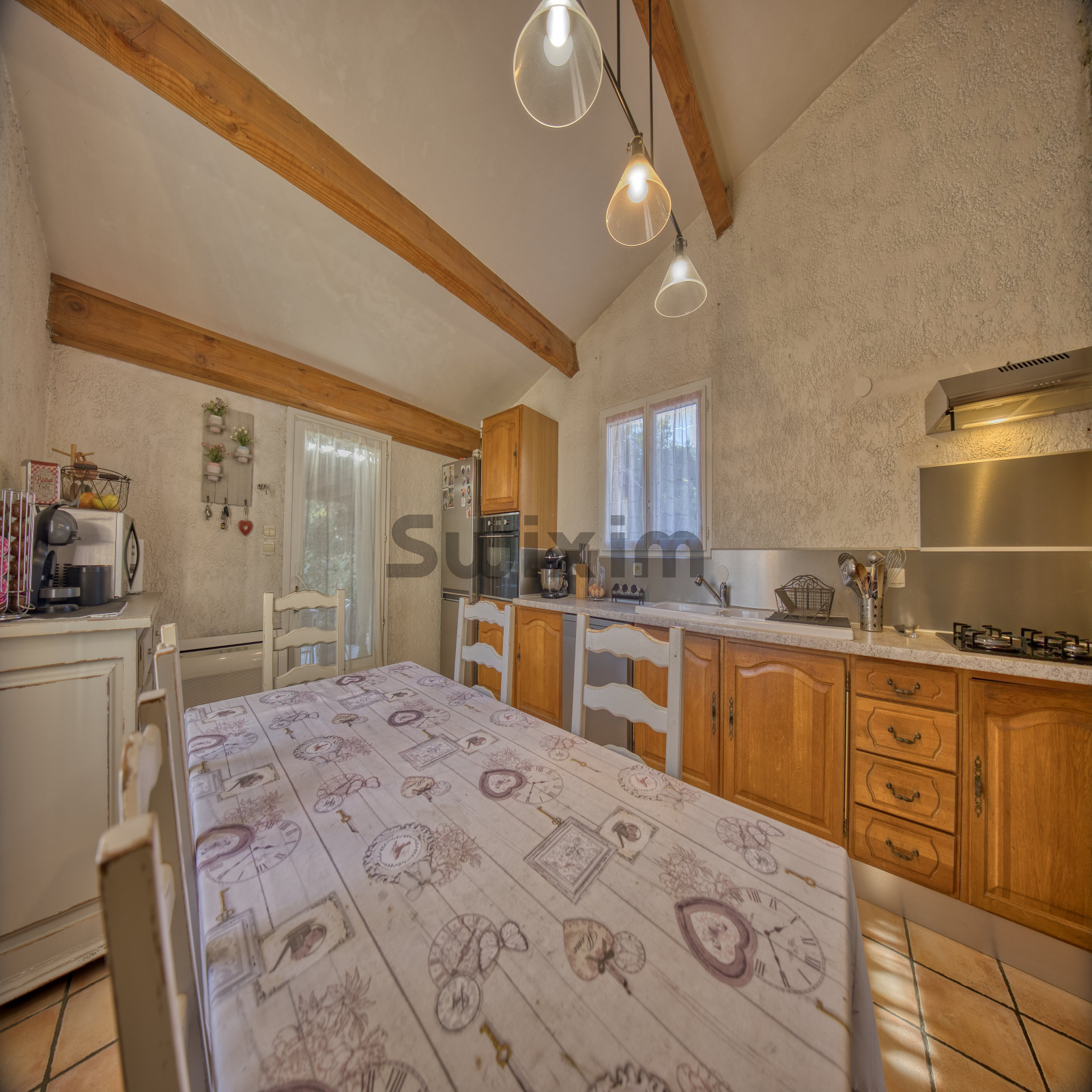 Séjour, cuisine séparée, donnant sur une terrasse et jardin en restanques d'environ 210m²