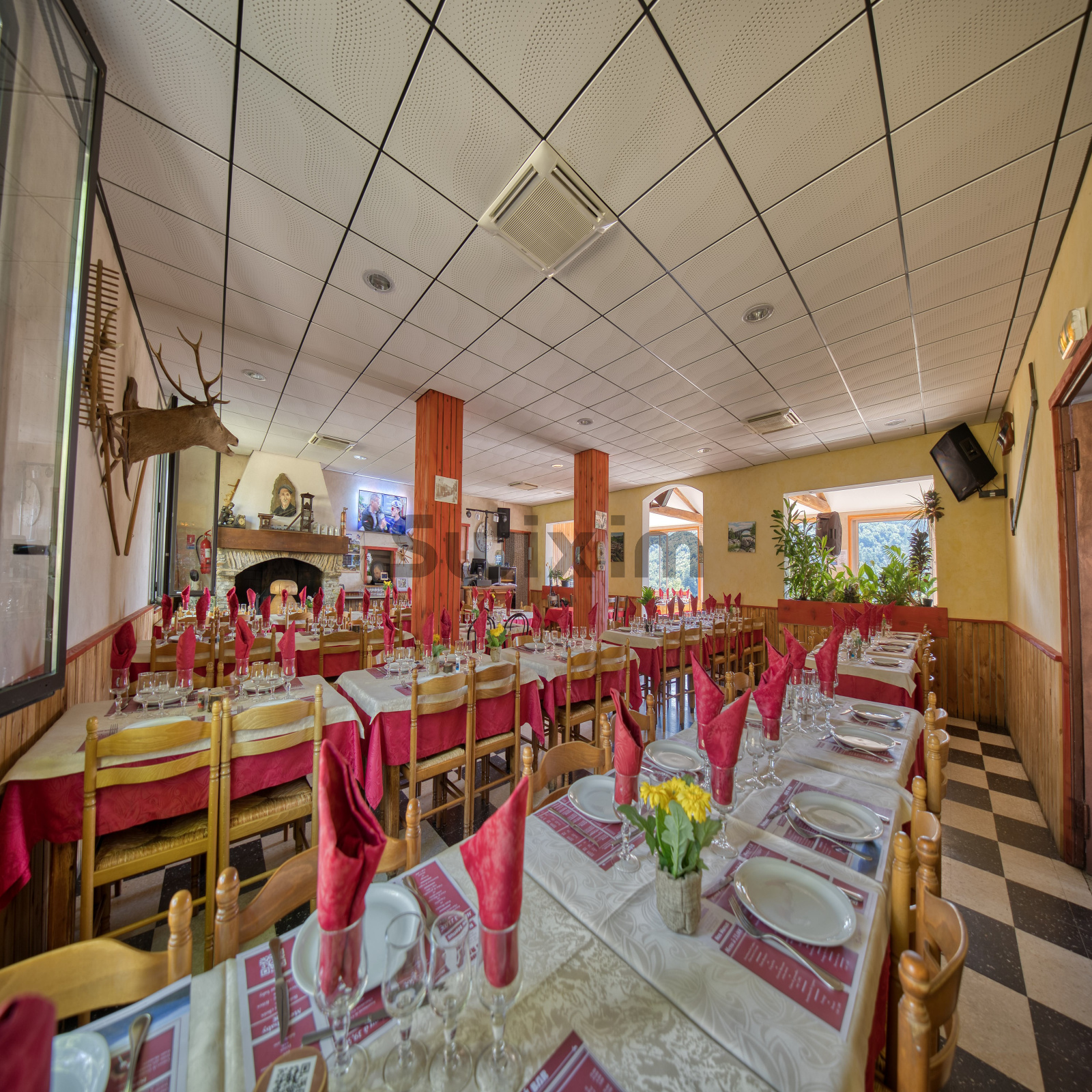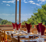 En Rez-De-Chaussée : Salle de restauration climatisée d'environ 140m² avec cheminée et véranda vous séduisant par sa vue panoramique, l'ensemble représentant environ 160 couverts