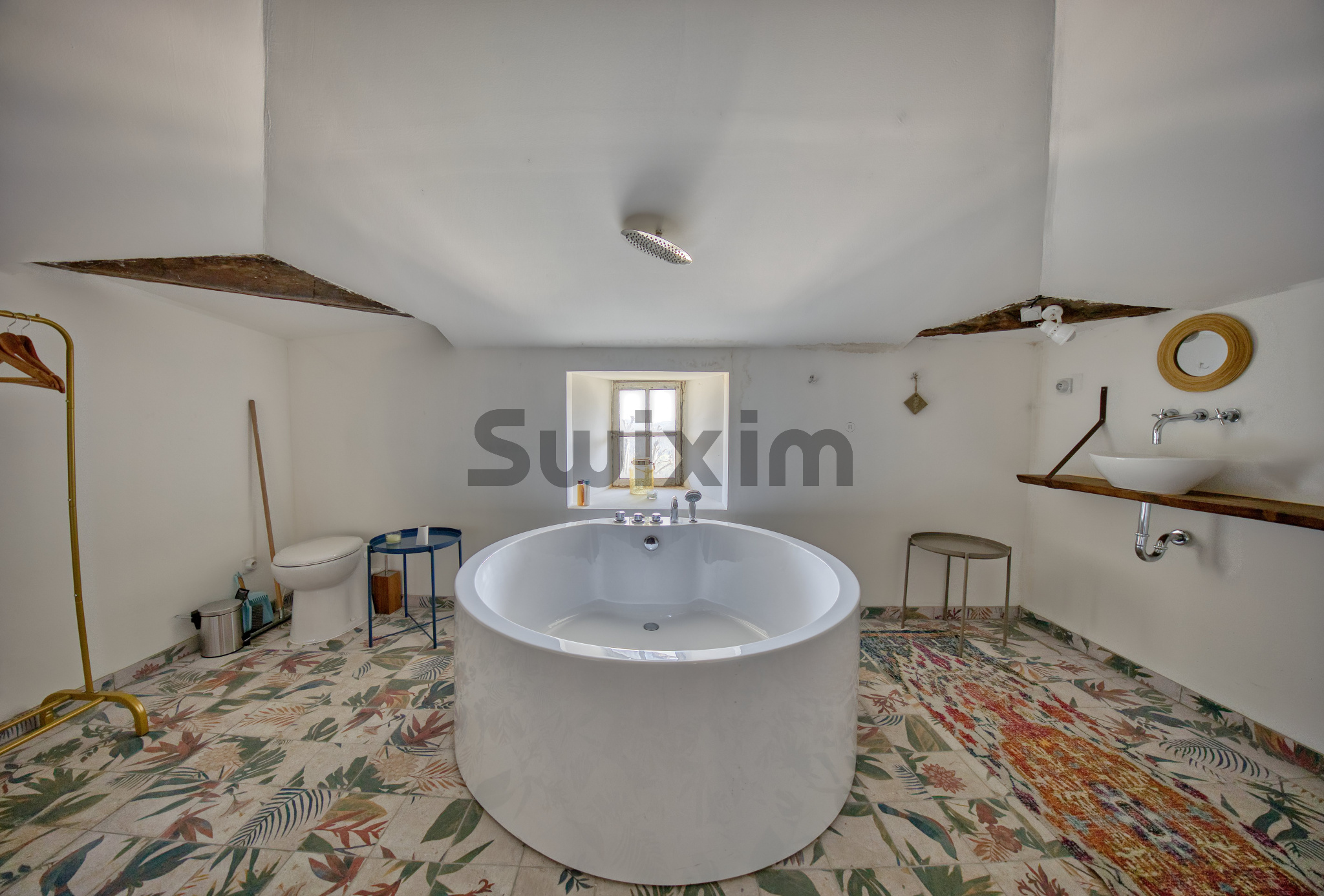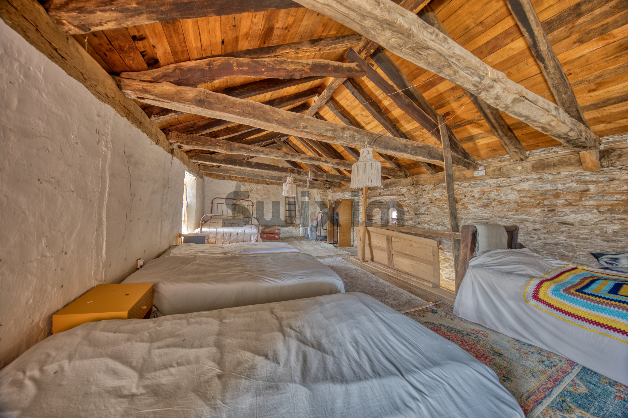 Le rez-de-chaussée s'ouvre sur un vaste séjour de 50 m² avec cuisine équipée, un salon agrémenté d'une magnifique cheminée avec four à pain, ainsi qu'une deuxième pièce de vie de 30 m² donnant sur une terrasse à la vue dégagée. Ce niveau dispose également d'une chambre et d'une salle d'eau. À l'étage, l'espace se compose d'un grand dortoir et d'une vaste salle de bain.