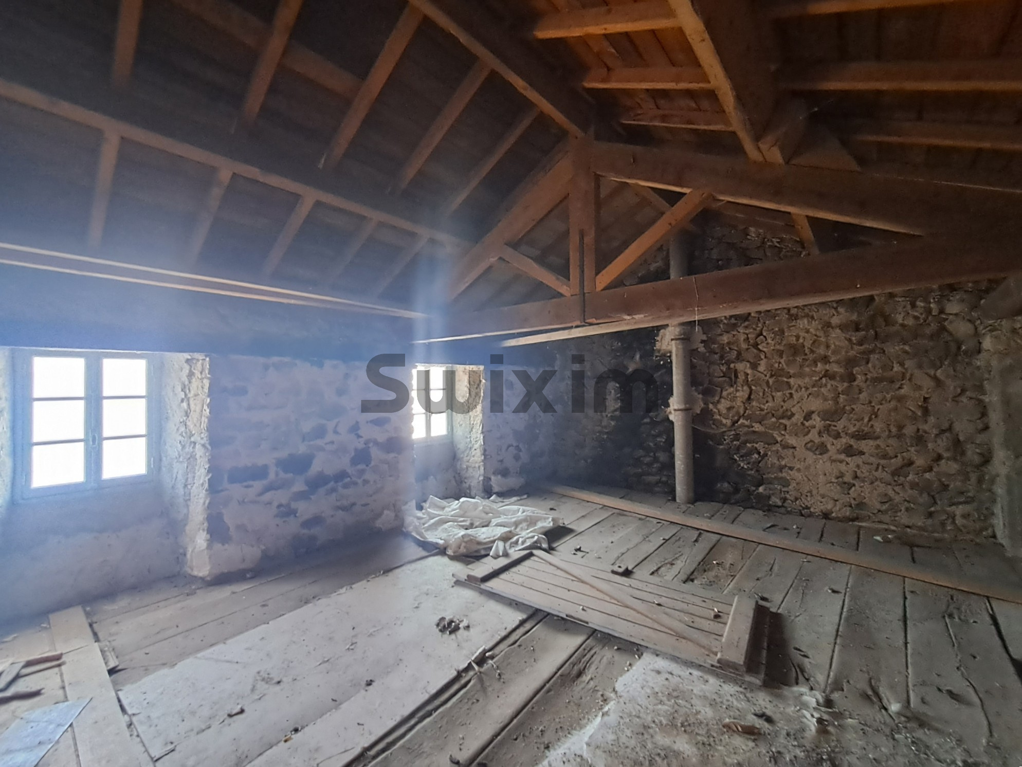 Côté technique, la toiture est en bon état et laisse admirer une magnifique charpente qui pourra rester apparente pour souligner le cachet de la demeure. Les murs en pierre, une fois mis à nu, renforceront l’authenticité de l’ensemble. Le bien dispose également d'un grand garage de 50 m², assaini par une chape de ciment récente, idéal pour le stationnement et le stockage. À l'extérieur, en plus des 40 m² de terrasse à l'étage, vous profiterez d'une terrasse couverte ainsi que d'un petit terrain attenant permettant de stationner des véhicules ou d'aménager un espace vert. Enfin, la maison est d'ores et déjà raccordée au réseau du tout-à-l'égout.