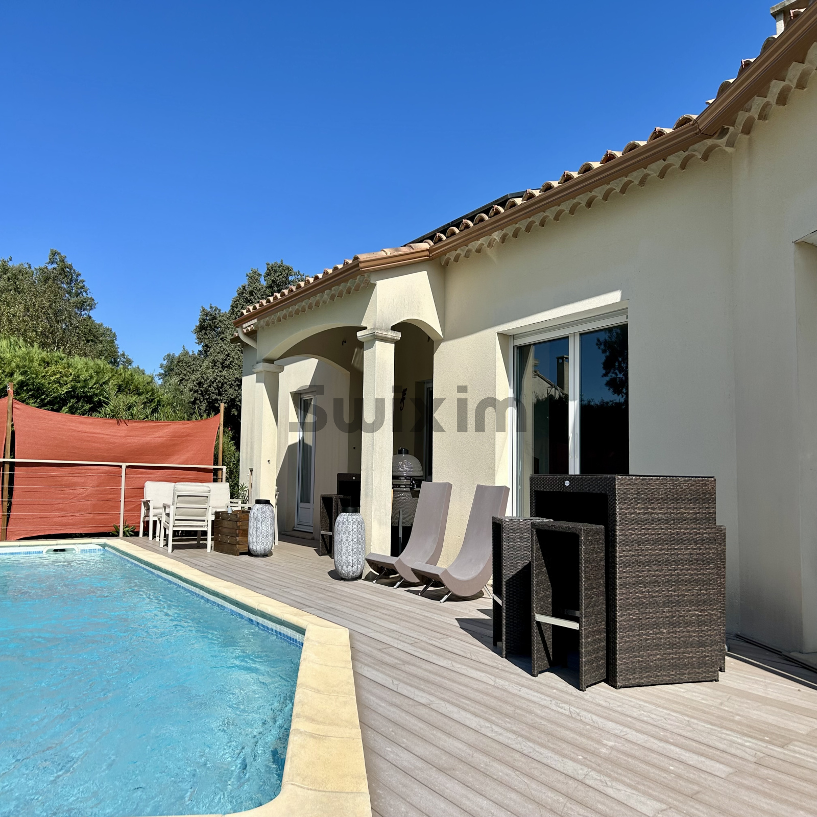 Les + : cadre naturel privilégié, villa de plain-pied, trois suites, studio indépendant, piscine, garage, vue dégagée.