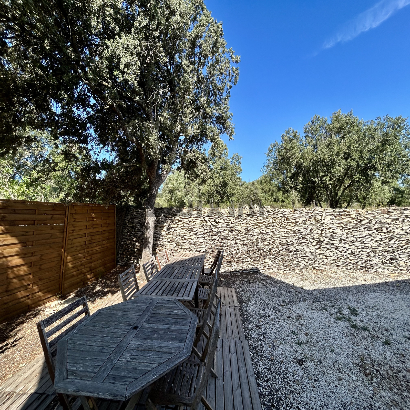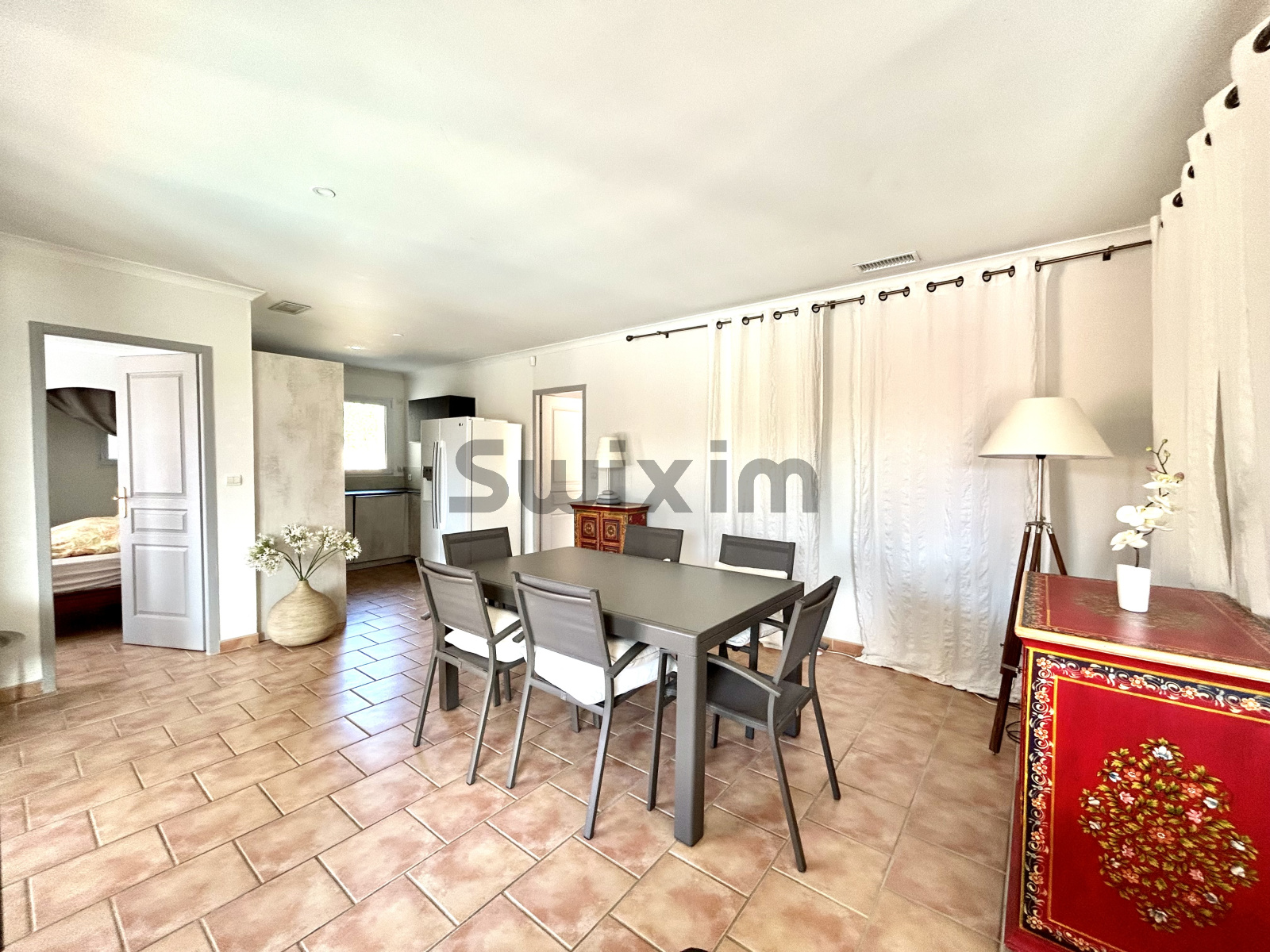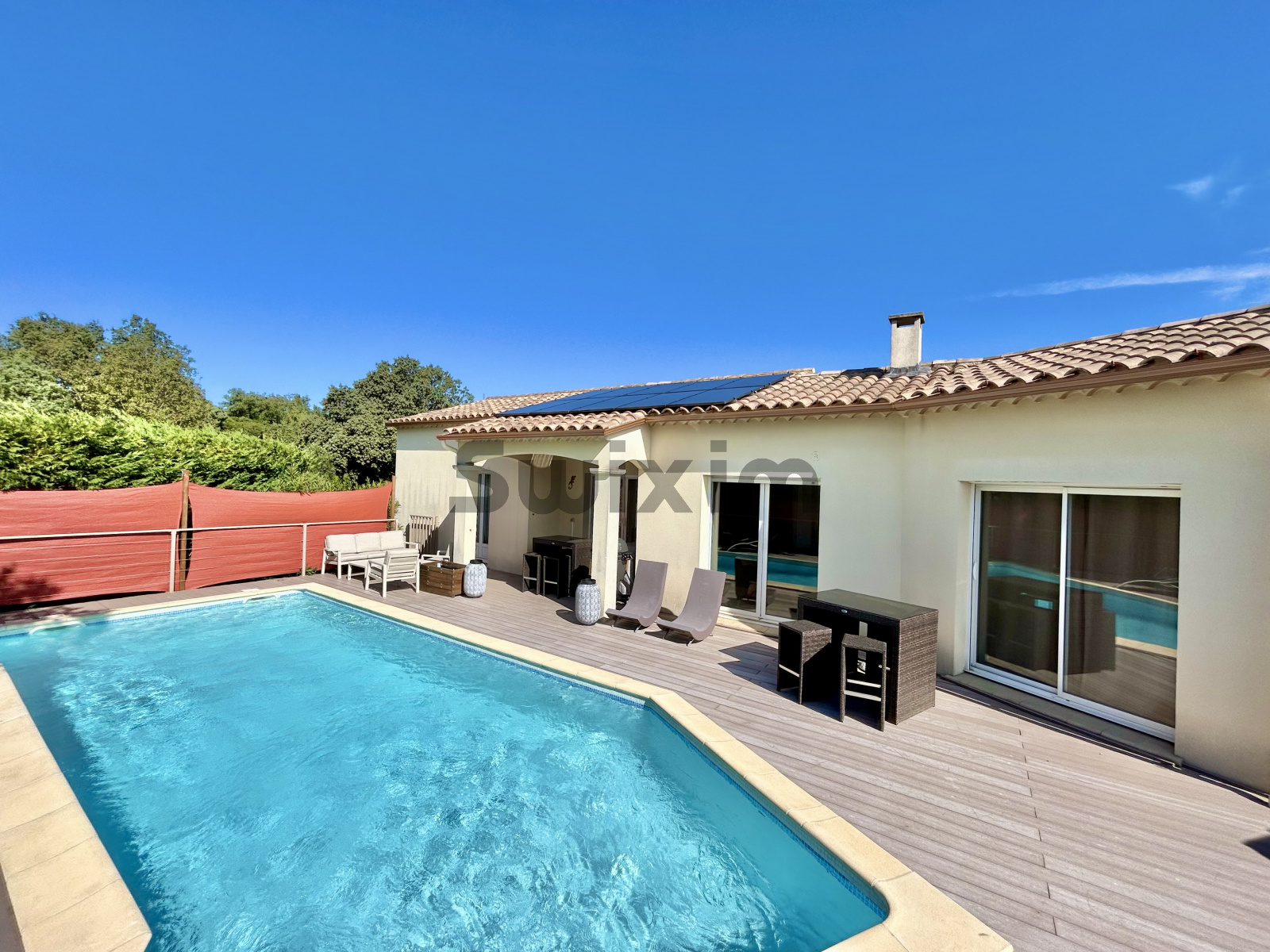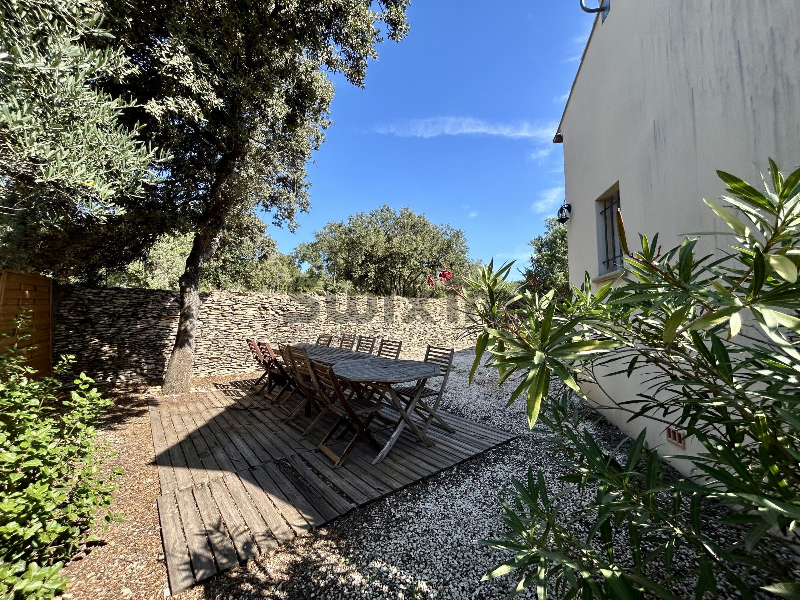 Laissez-vous séduire par cette charmante villa de plain-pied à l’allure méditerranéenne, nichée au calme à l’orée de la garrigue, à seulement 10 minutes d’Uzès, dans un village recherché proche des axes routiers/TGV.... Édifiée en 2004 sur une parcelle de +800 m² exposée plein sud, elle offre 110 m² habitables composés d’une belle pièce de vie lumineuse de 43 m² avec cuisine ouverte équipée, deux grandes chambres disposant chacune de leur salle d’eau privative, et un studio indépendant de 25 m² avec sa propre pièce d’eau, idéal pour recevoir ou pour un usage locatif.