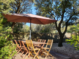 Le terrain, joliment aménagé, arboré, bordé d'un charmant muret de pierres seches et sans vis-à-vis, accueille une piscine au sel de 8x4 m, entièrement automatique avec récupération d'eau de pluie, un garage de 24 m², et terrasses propices à la détente en toute tranquillité.