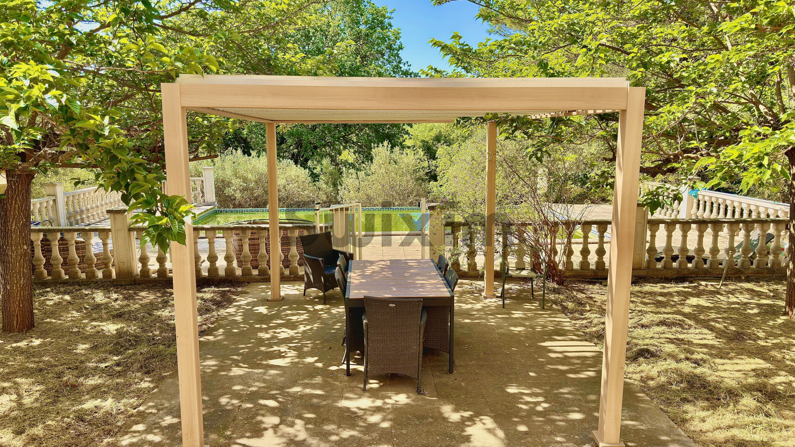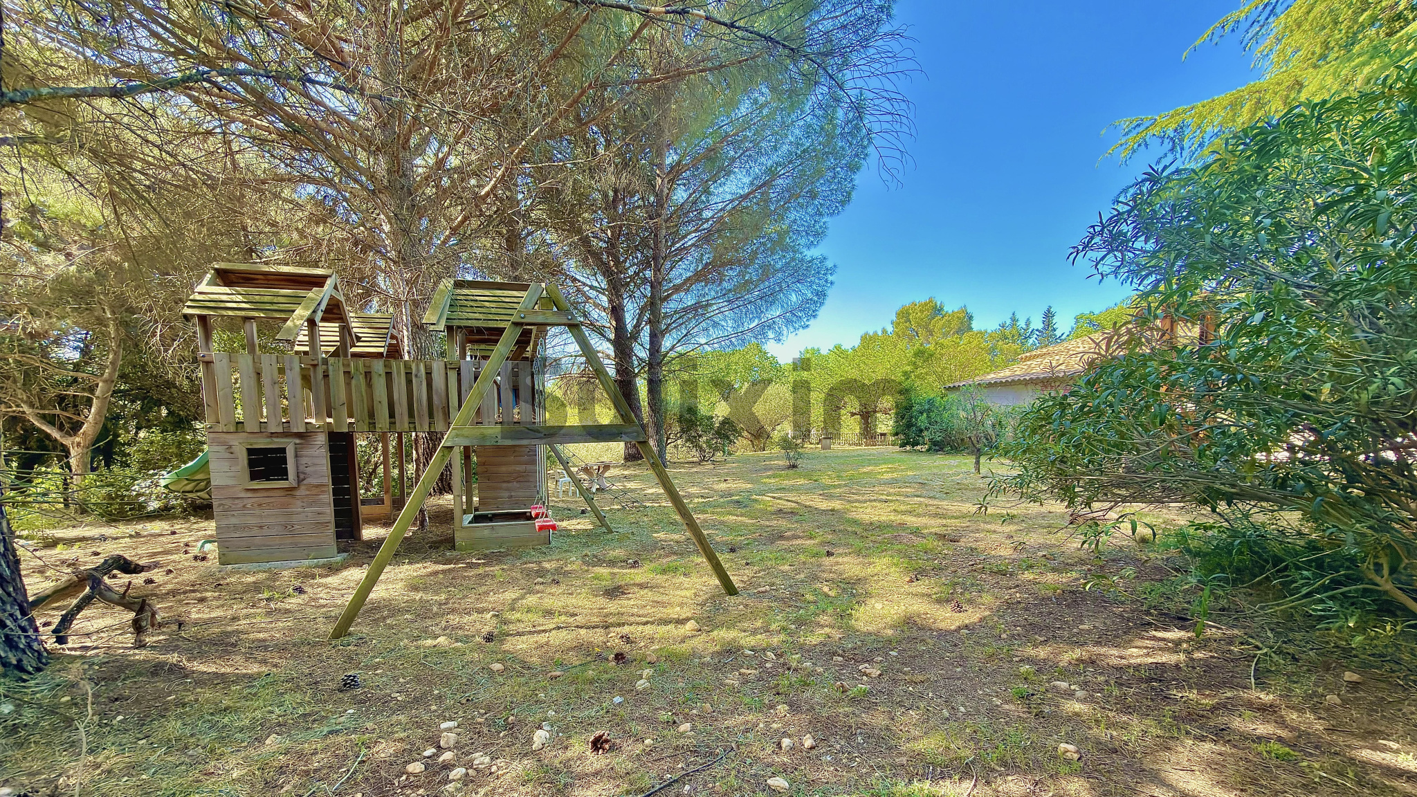 Swixim international vous propose en excusivité cette villa d'environ 130 m² située à Castillon du gard dans une pinède d'environ 2300 m² avec piscine à débordement.