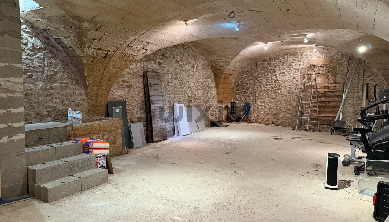 En contrebas, une vaste cave voûtée d’environ 120 m², aux plafonds en croisées d’ogives, révèle un charme rare et offre de nombreuses possibilités d’usage.