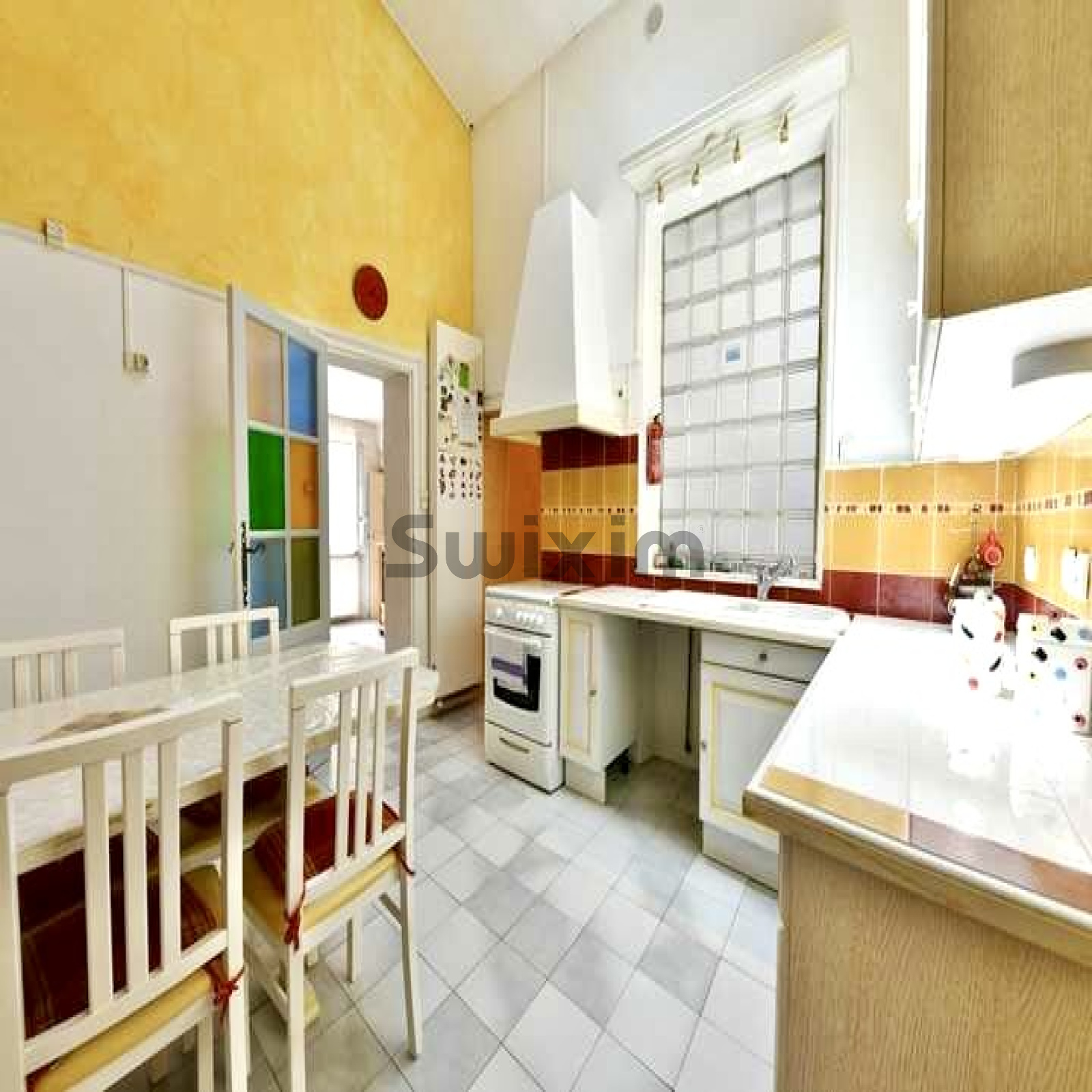 - d'une cuisine équipée centrale lumineuse grâce à un vélux et assurant une belle fluidité entre les espaces,