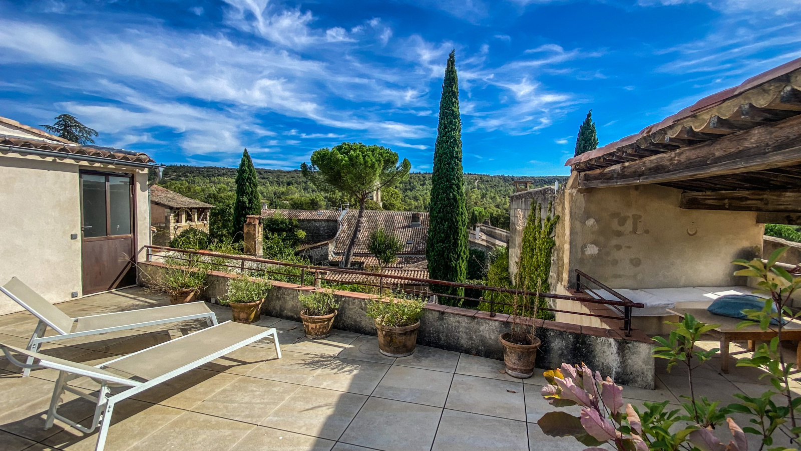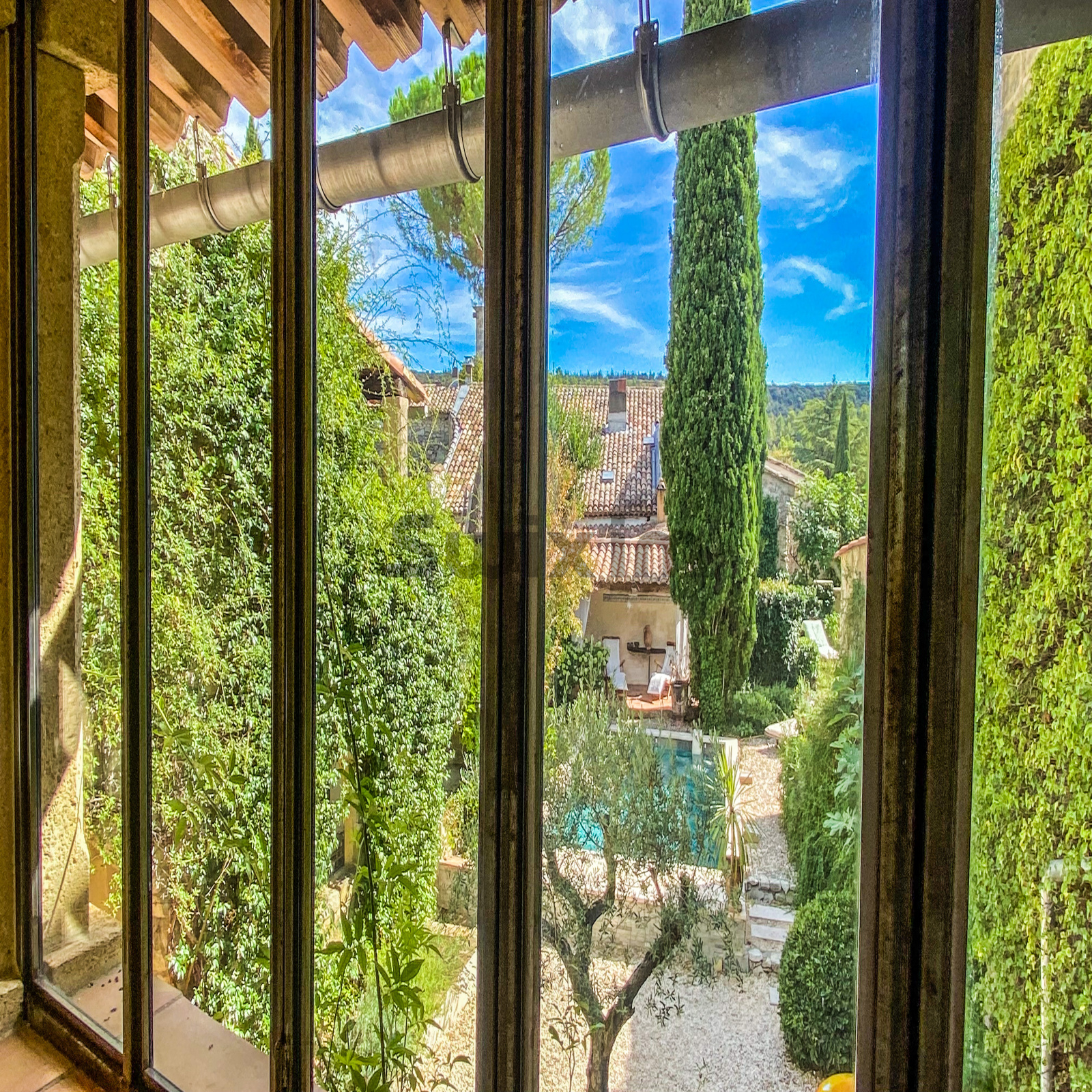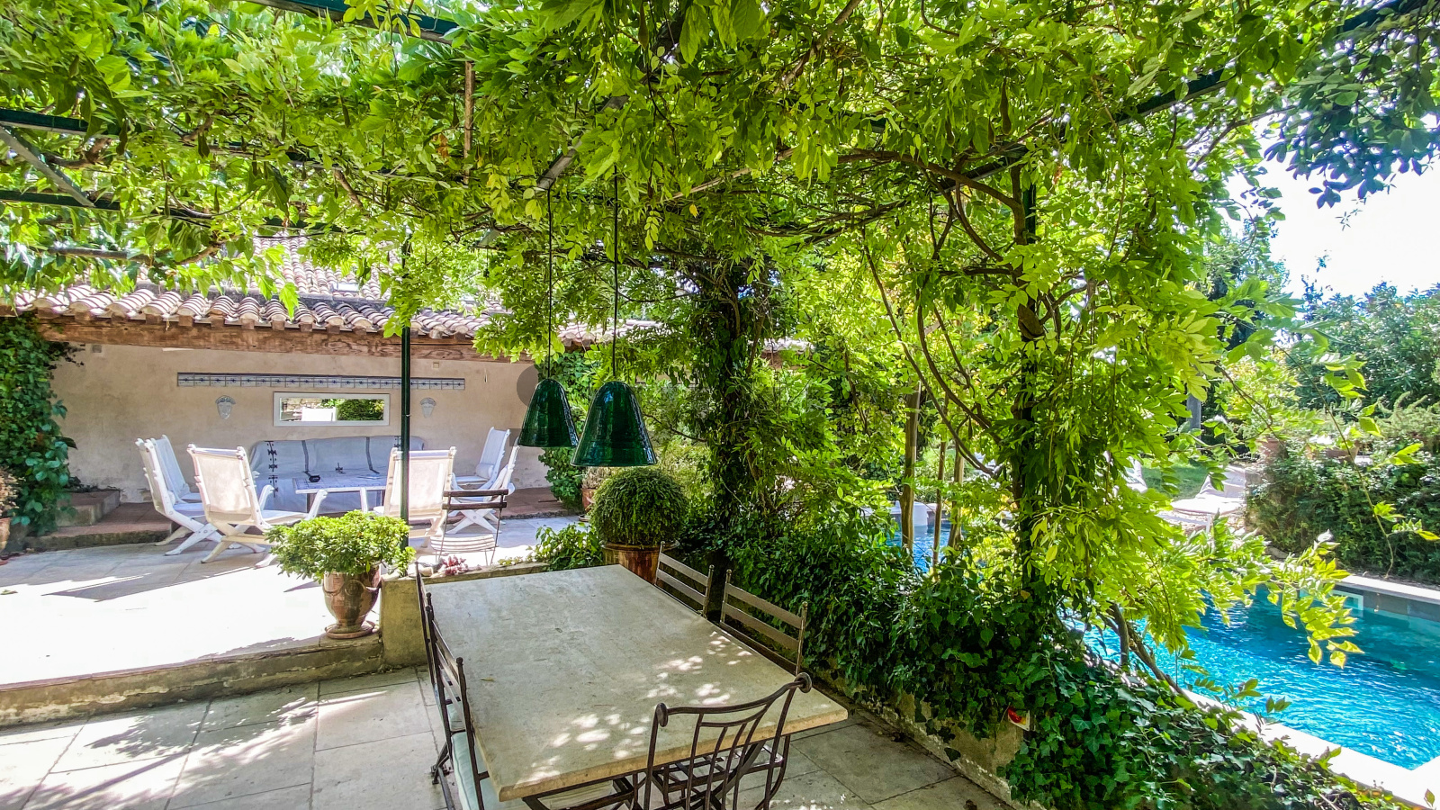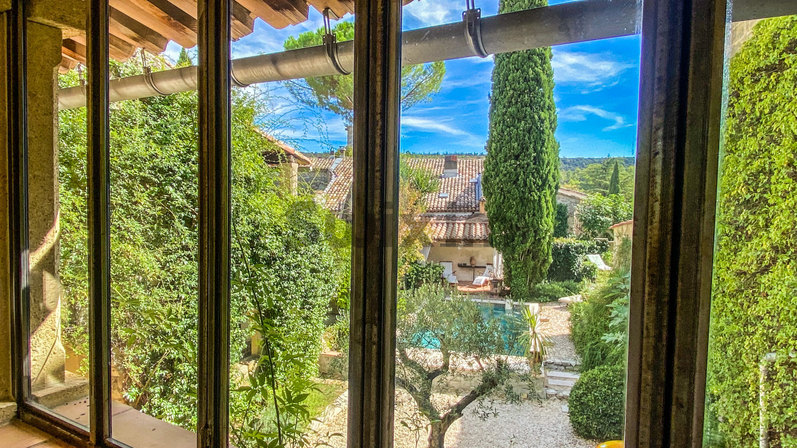 A 11 kms d'Uzès, dans un hameau bordé de collines, COUP DE COEUR pour cette belle propriété de village avec sa vaste cour fermée où l'on accède par un porche fermé, ses terrasses et jardins suspendus dominant les alentours...Cette maison d'environ 250 m2 dont on a su conserver l'authenticité avec le confort d'aujourd'hui est un lieu paisible où peuvent se réunir une grande famille grâce à ses sept chambres et ses cinq salles d'eau-wc avec des accès pour la plupart directs sur le jardin grâce à la coursive, une grande pièce de vie d'environ 60 m2 en rez de jardin, voutée sur la partie salon. La cuisine est équipée d'un piano SMEG et d'une cuisinière à bois comme autrefois. Une terrasse recouverte de glycine pour les déjeuners pendant les heures chaudes de l'été, une petite terrasse couverte, une jolie piscine (7X3,80 m) façon bassin avec rideau électrique et chauffée par une pompe à chaleur au coeur d'un jardin intime et verdoyant d'environ 500 m2 invite à la détente, à l'ombre des arbres ou au soleil selon vos envies. Des caves et une terrasse panoramique complètent ce bel ensemble.