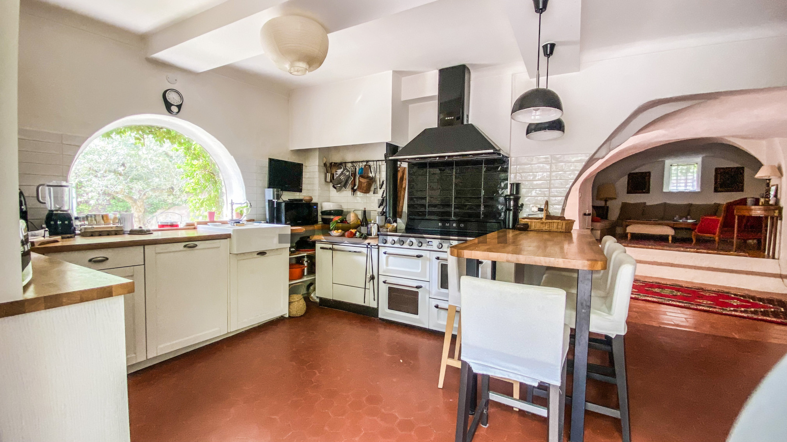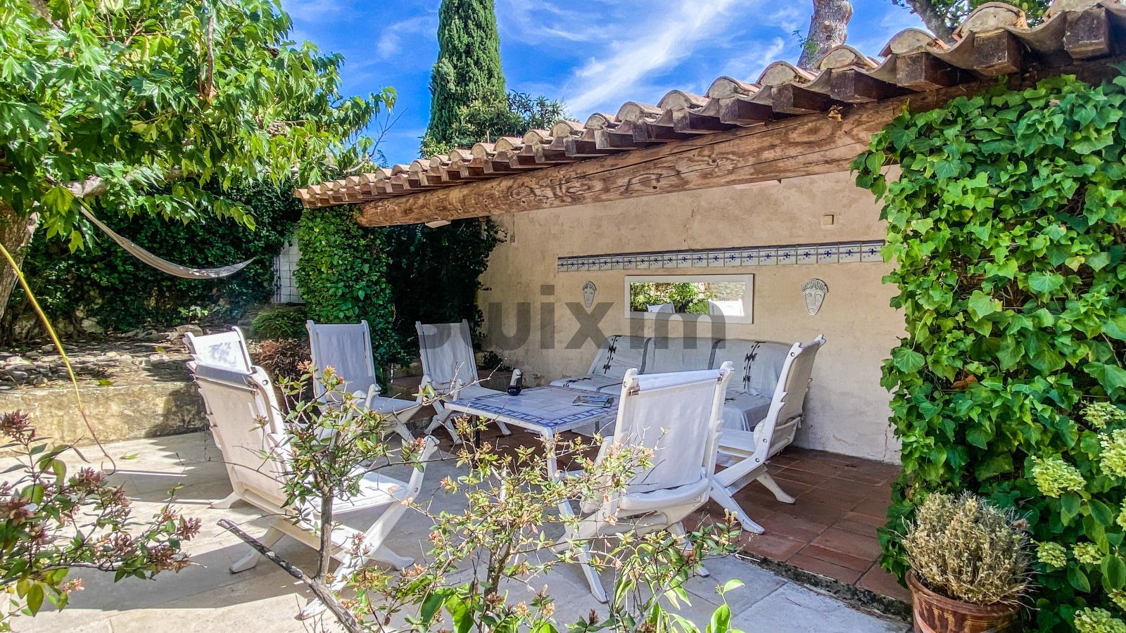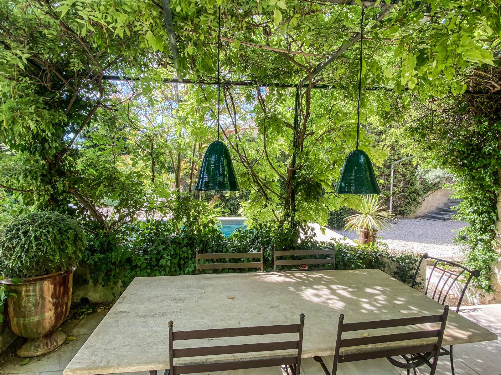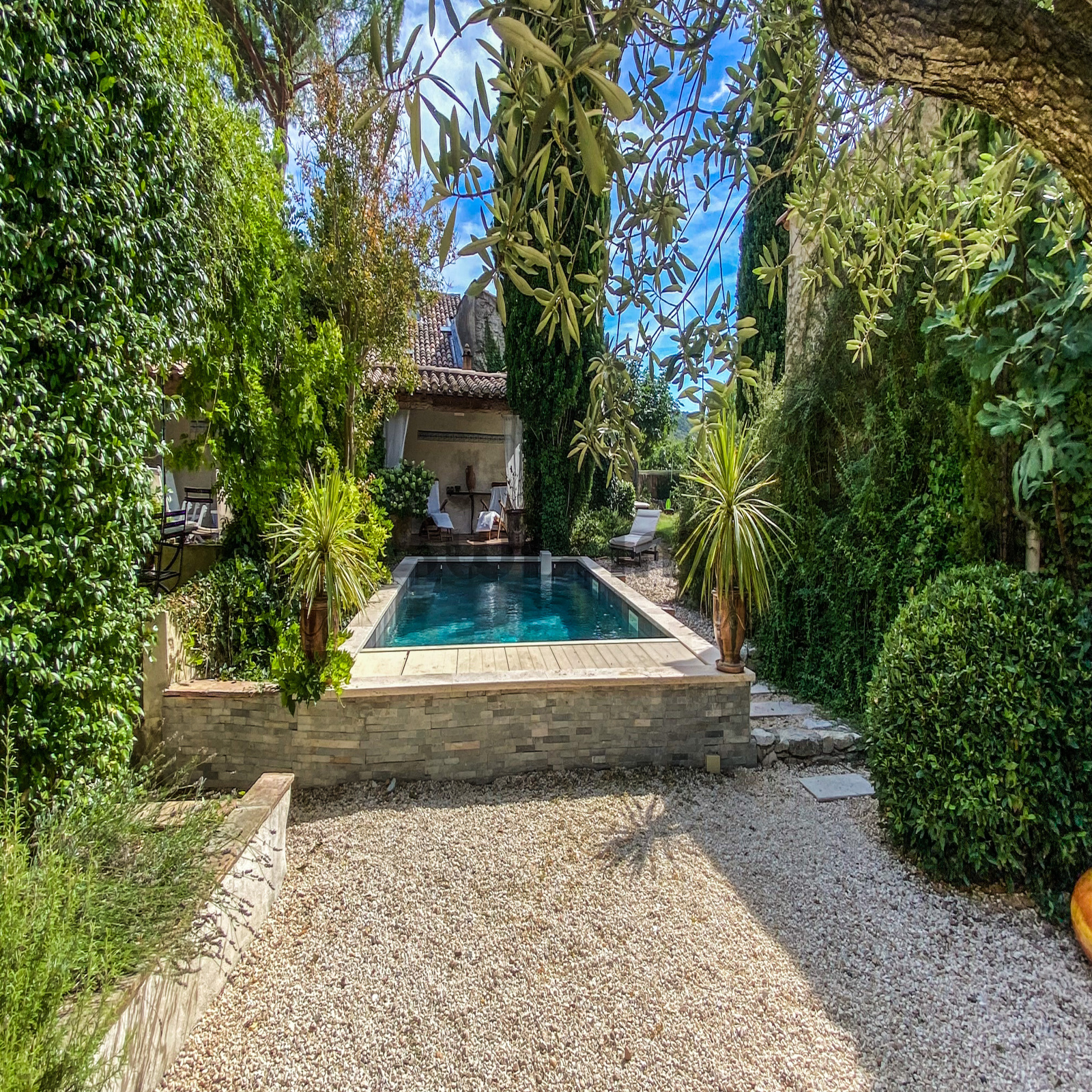 A 11 kms d'Uzès, dans un hameau bordé de collines, COUP DE COEUR pour cette belle propriété de village avec sa vaste cour fermée où l'on accède par un porche fermé, ses terrasses et jardins suspendus dominant les alentours...Cette maison d'environ 250 m2 dont on a su conserver l'authenticité avec le confort d'aujourd'hui est un lieu paisible où peuvent se réunir une grande famille grâce à ses sept chambres et ses cinq salles d'eau-wc avec des accès pour la plupart directs sur le jardin grâce à la coursive, une grande pièce de vie d'environ 60 m2 en rez de jardin, voutée sur la partie salon. La cuisine est équipée d'un piano SMEG et d'une cuisinière à bois comme autrefois. Une terrasse recouverte de glycine pour les déjeuners pendant les heures chaudes de l'été, une petite terrasse couverte, une jolie piscine (7X3,80 m) façon bassin avec rideau électrique et chauffée par une pompe à chaleur au coeur d'un jardin intime et verdoyant d'environ 500 m2 invite à la détente, à l'ombre des arbres ou au soleil selon vos envies. Des caves et une terrasse panoramique complètent ce bel ensemble.