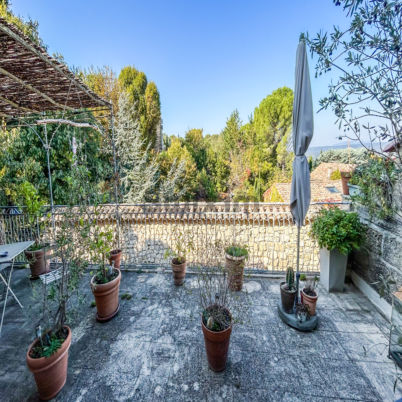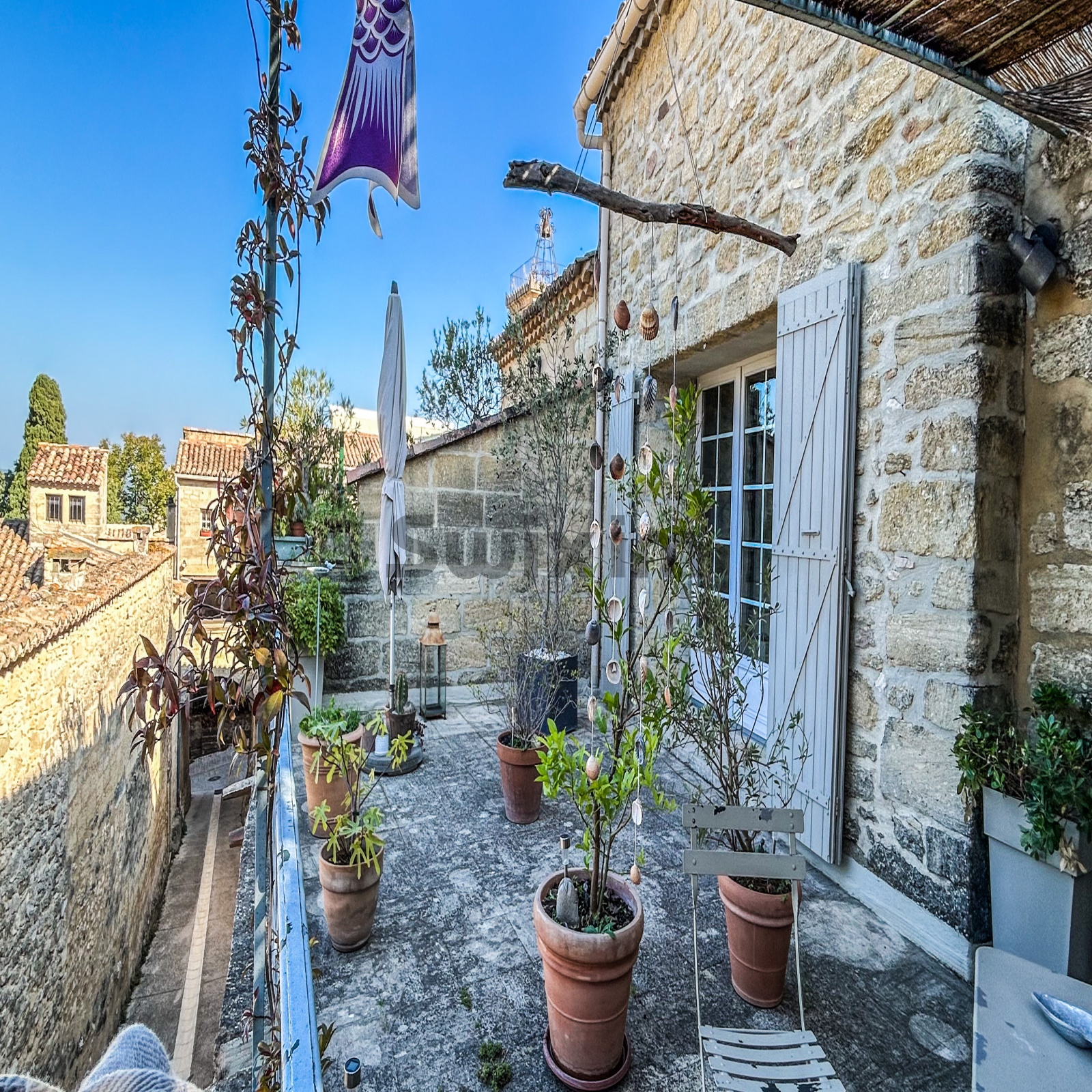 A quelques minutes d'Uzès, dans l'un des plus beaux villages de l'Uzège, coup de coeur pour cette jolie maison de village d'environ 170 m2 avec trois belles terrasses offrant des vues inouies du village jusqu'au Mont Bouquet.