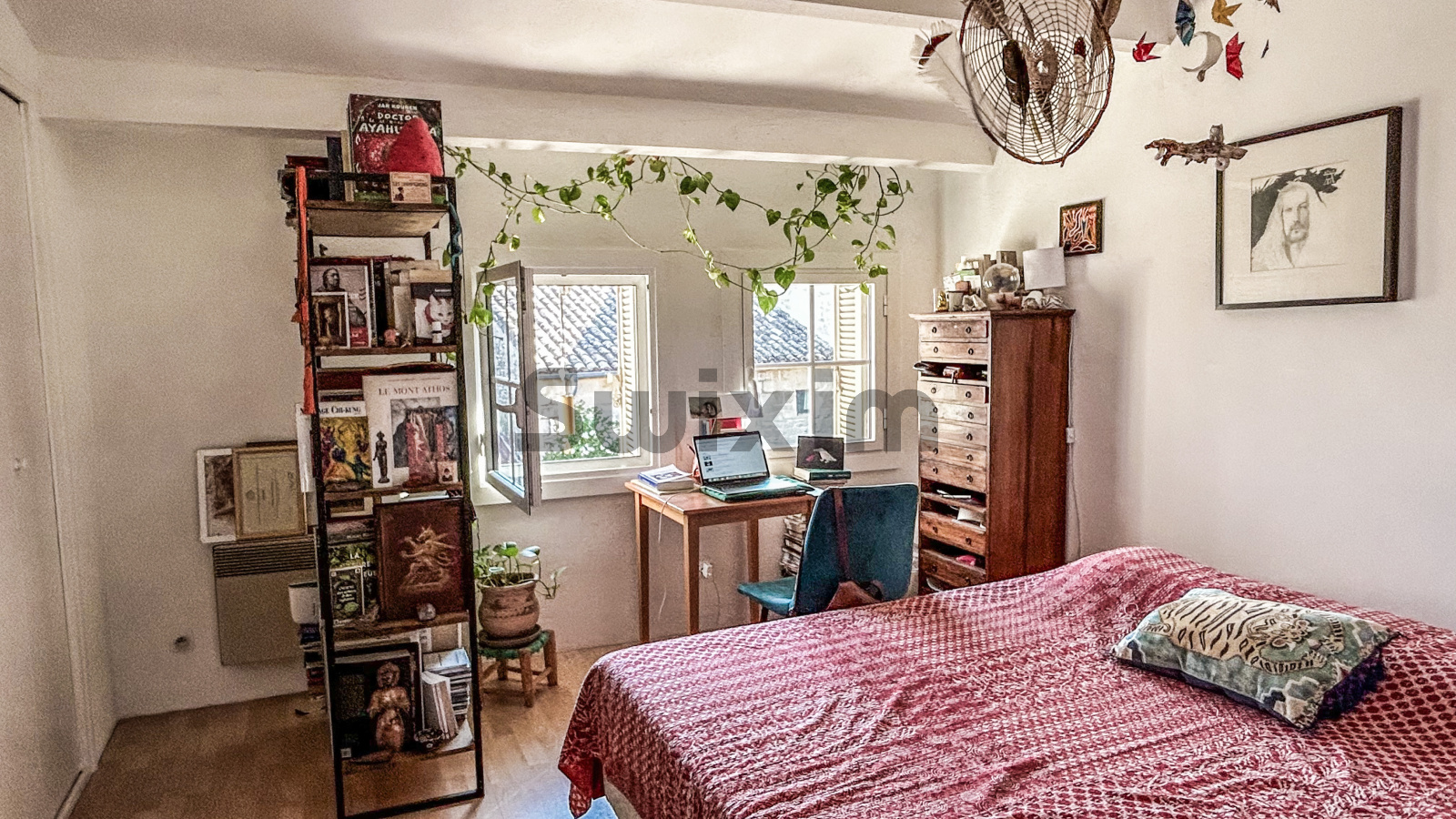 Au premier niveau, hall d'entrée, cuisine récente, salon-séjour avec cheminée qui donne accès à une première belle terrasse à la vue subjuguante, deux chambres dont une, très spacieuse avec mezzanine, salle de bains et wc. On accède à ce niveau à une autre terrasse végétalisée pour profiter du soleil le matin et des vues sur le village.