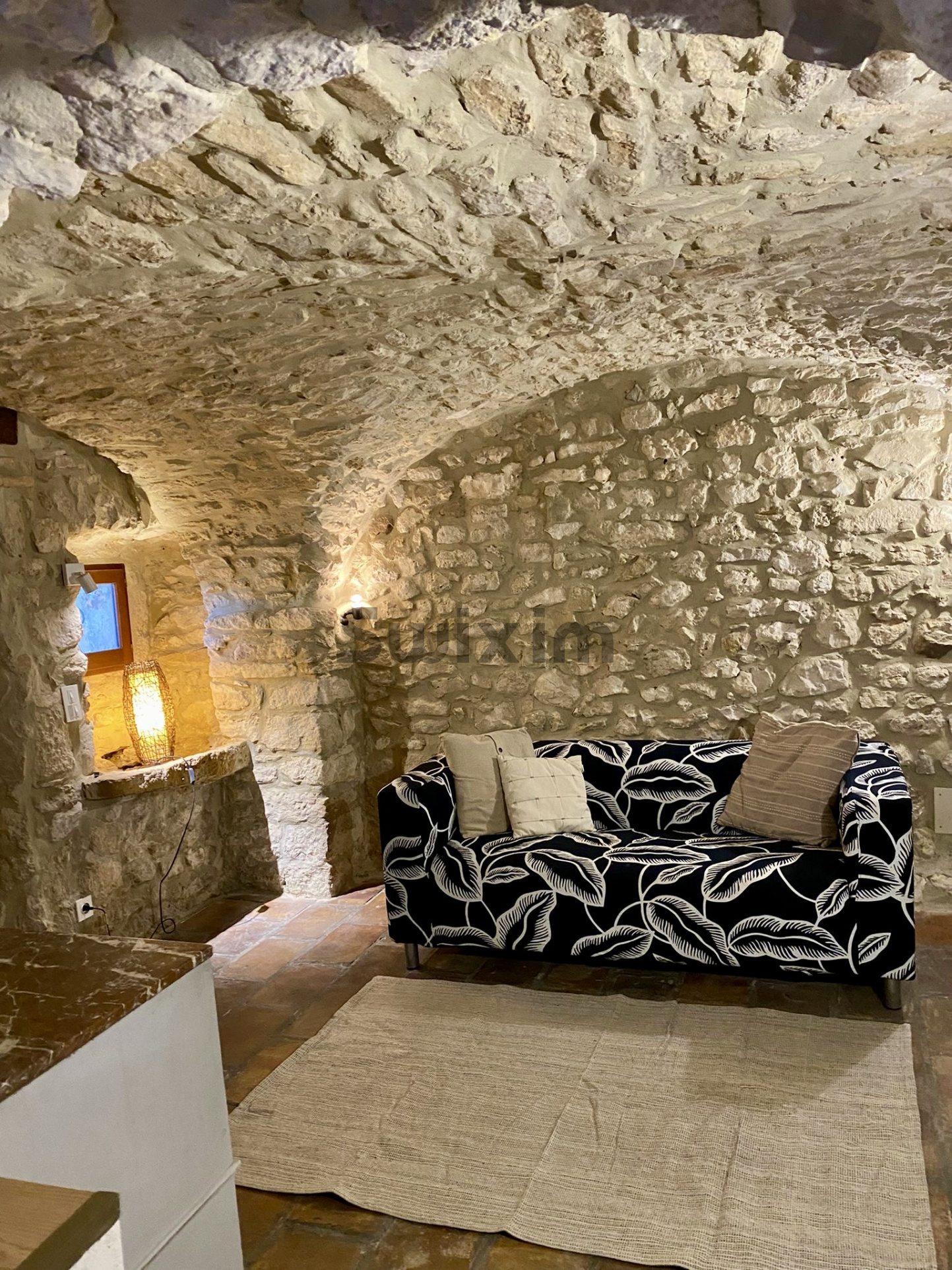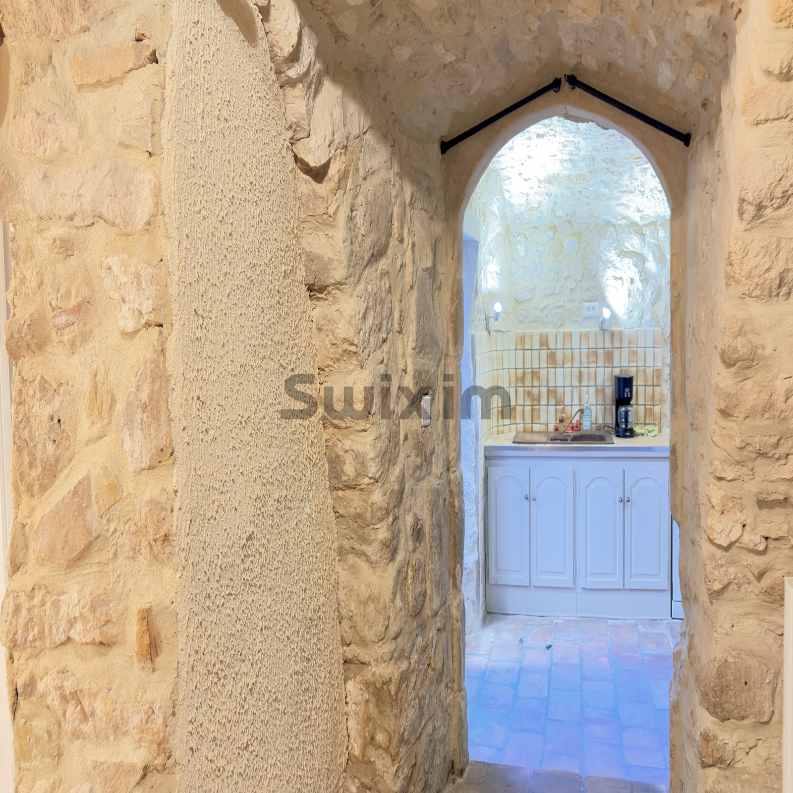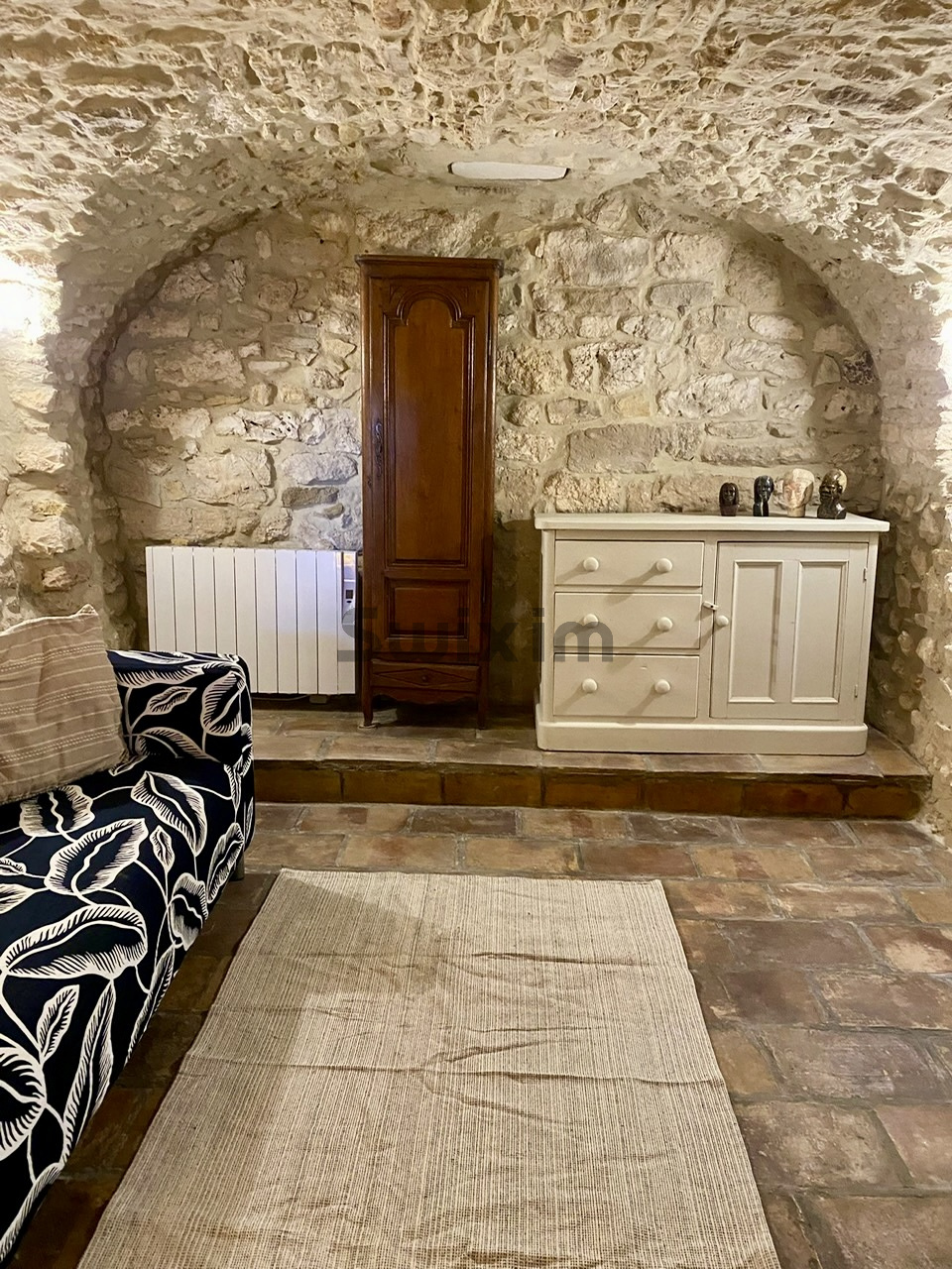 Rez-de-jardin charmant : Une cuisine équipée, un salon en pierre voûtée, ouverts sur une jolie cour, une chambre également pleine de charme et en pierre dans une pièce voûtée avec sa salle d'eau attenante, un petit espace polyvalent pouvant servir de bureau ou chambre d'appoint, wc indépendant.