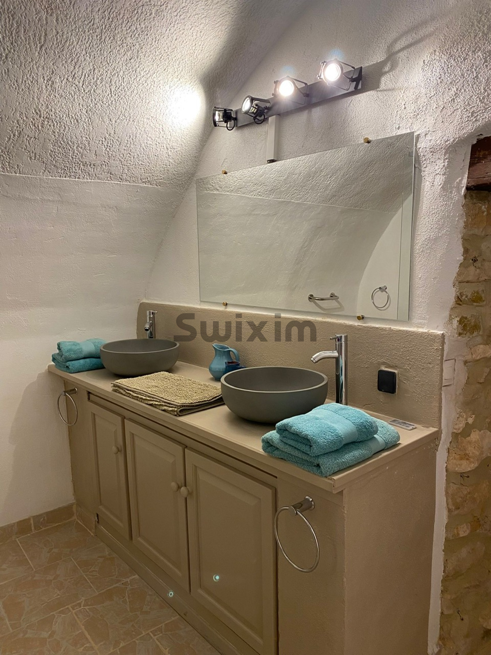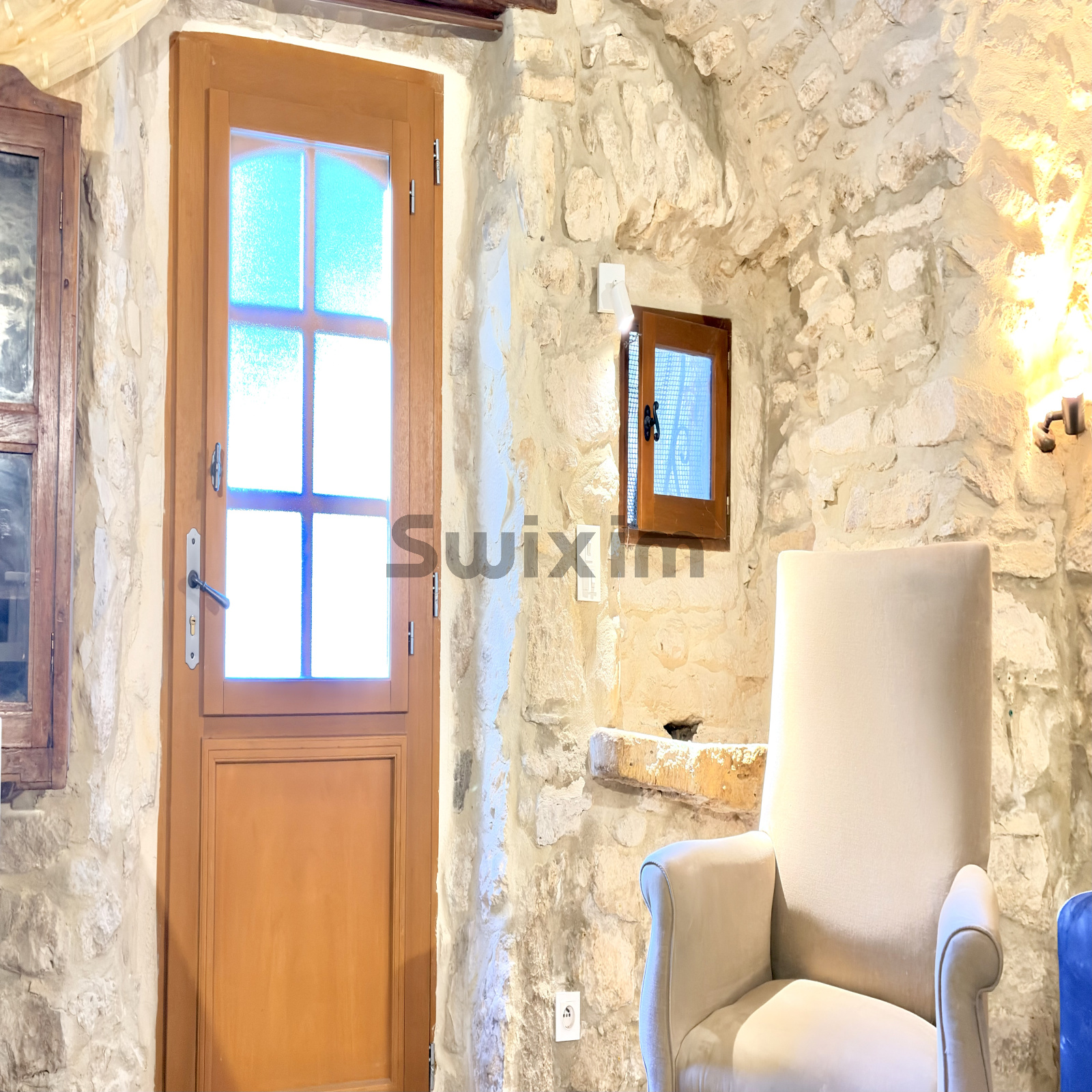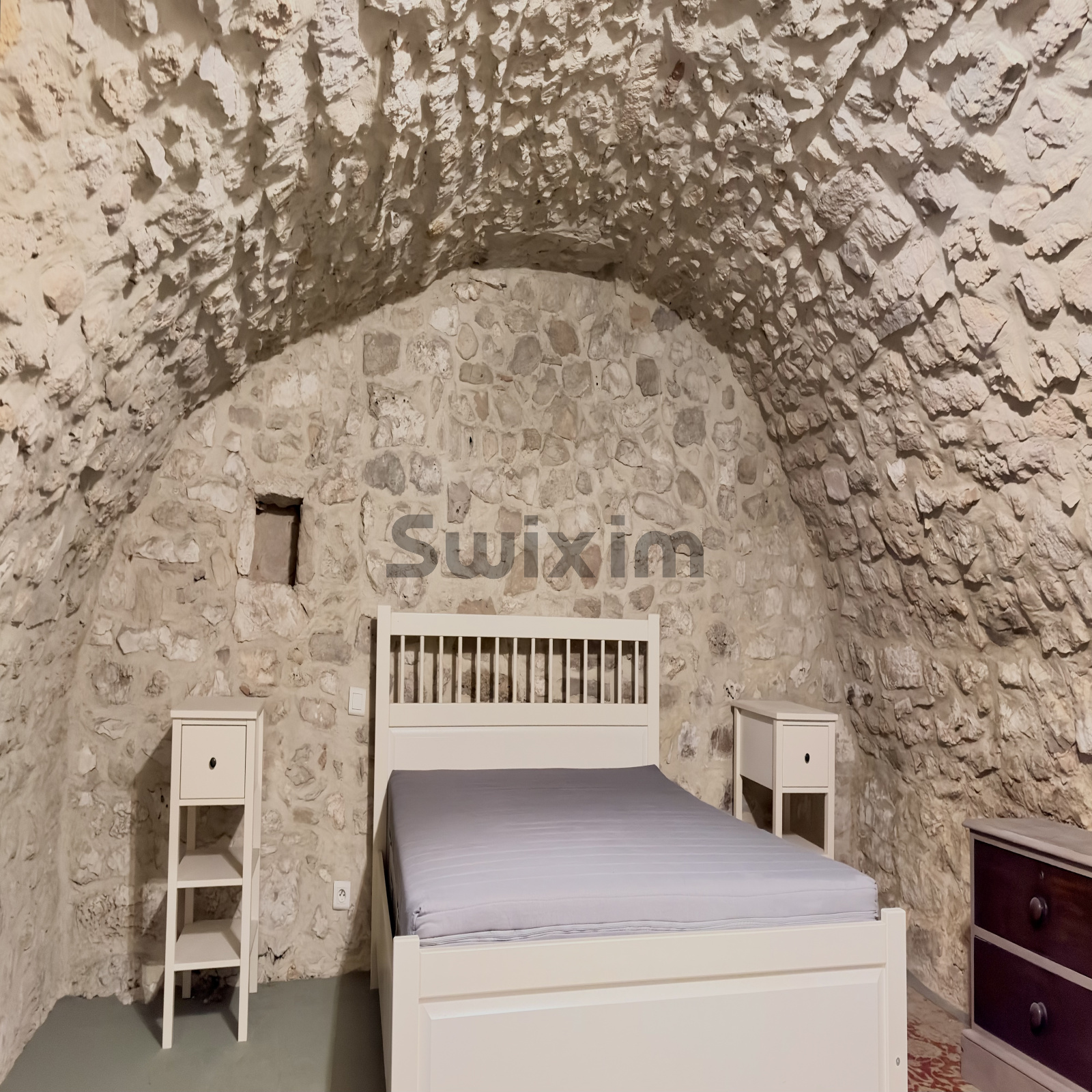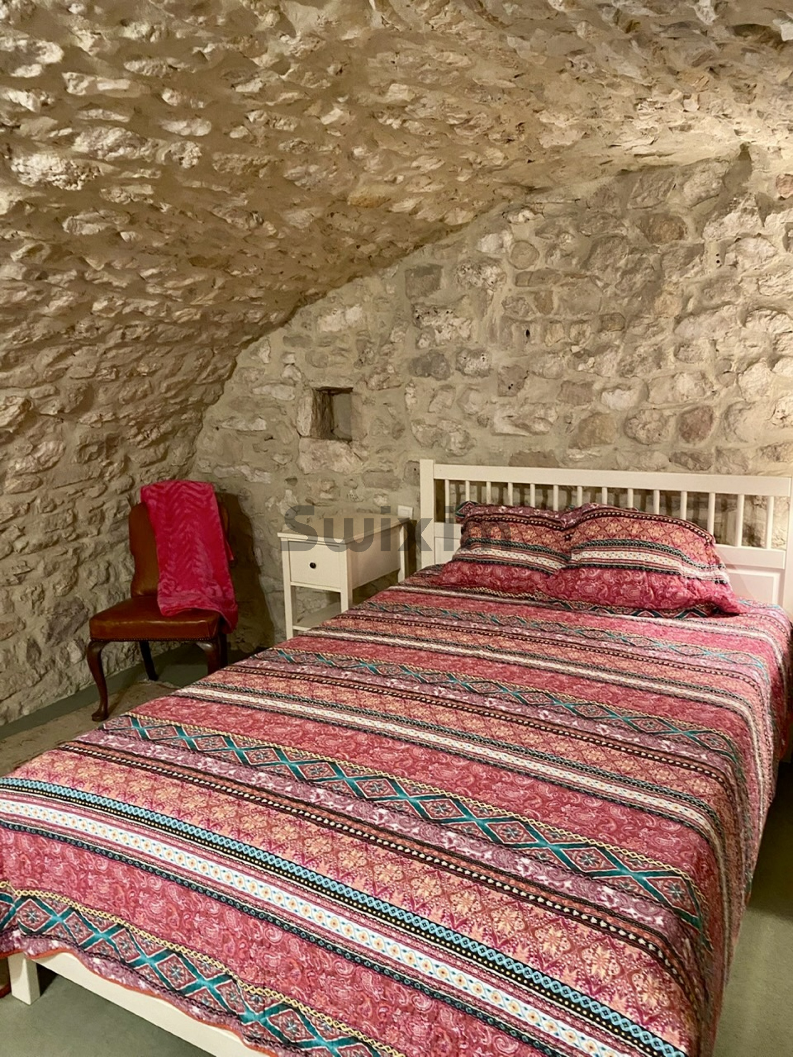 Rez-de-jardin charmant : Une cuisine équipée, un salon en pierre voûtée, ouverts sur une jolie cour, une chambre également pleine de charme et en pierre dans une pièce voûtée avec sa salle d'eau attenante, un petit espace polyvalent pouvant servir de bureau ou chambre d'appoint, wc indépendant.