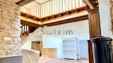 A l'étage panoramique : Grande terrasse abritée avec vue dégagée sur la campagne, grand séjour avec une belle cheminée avec insert, cuisine ouverte équipée, jouxtant un salon avec mezzanine pour deux couchages, une chambre, une salle d'eau et wc séparé.