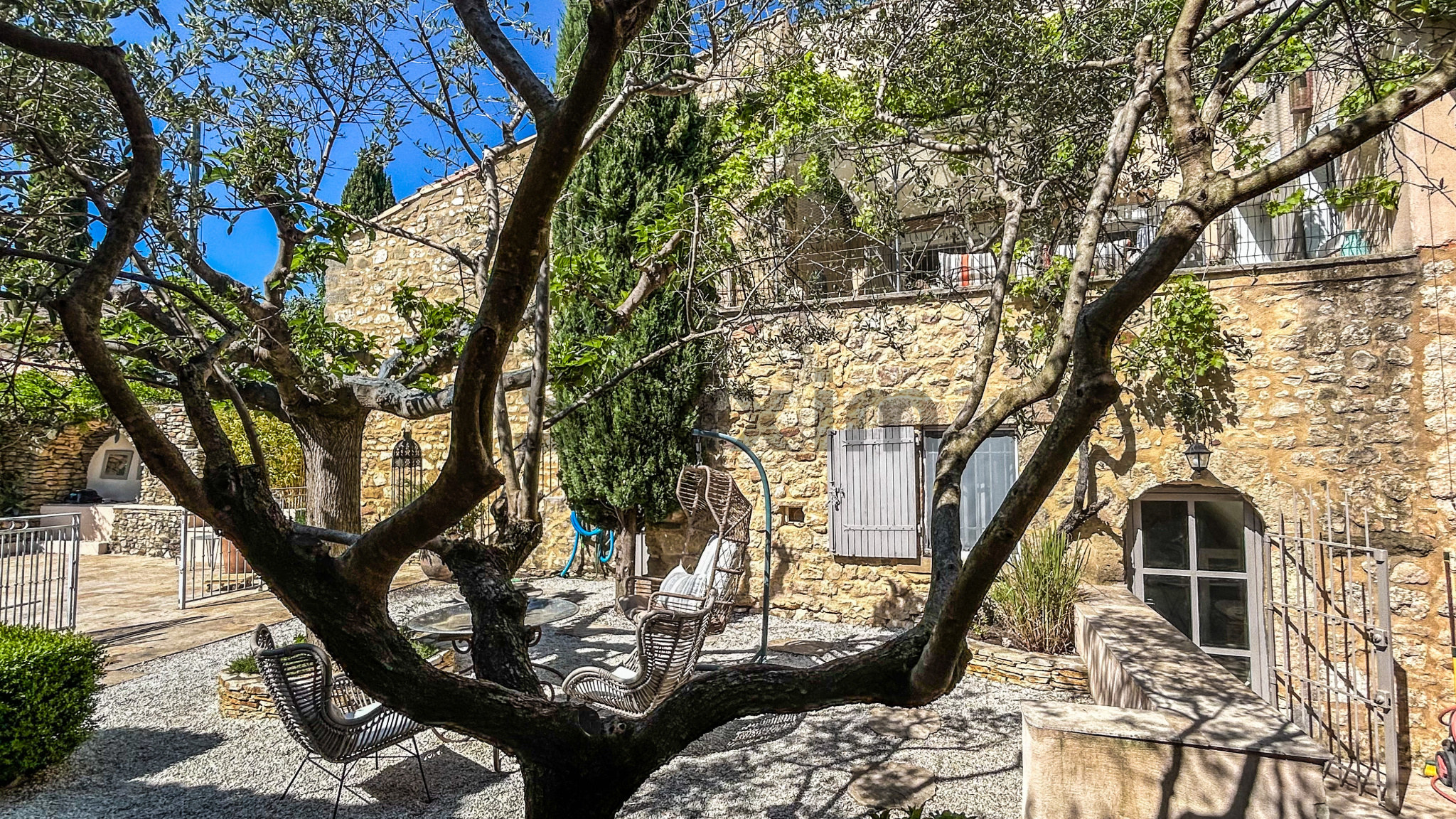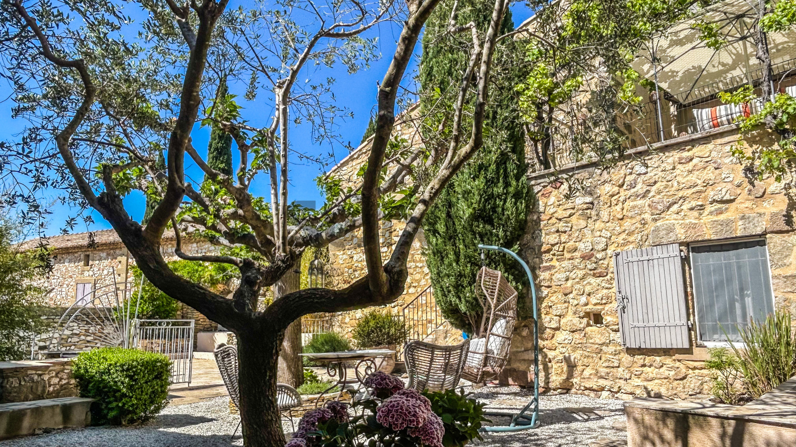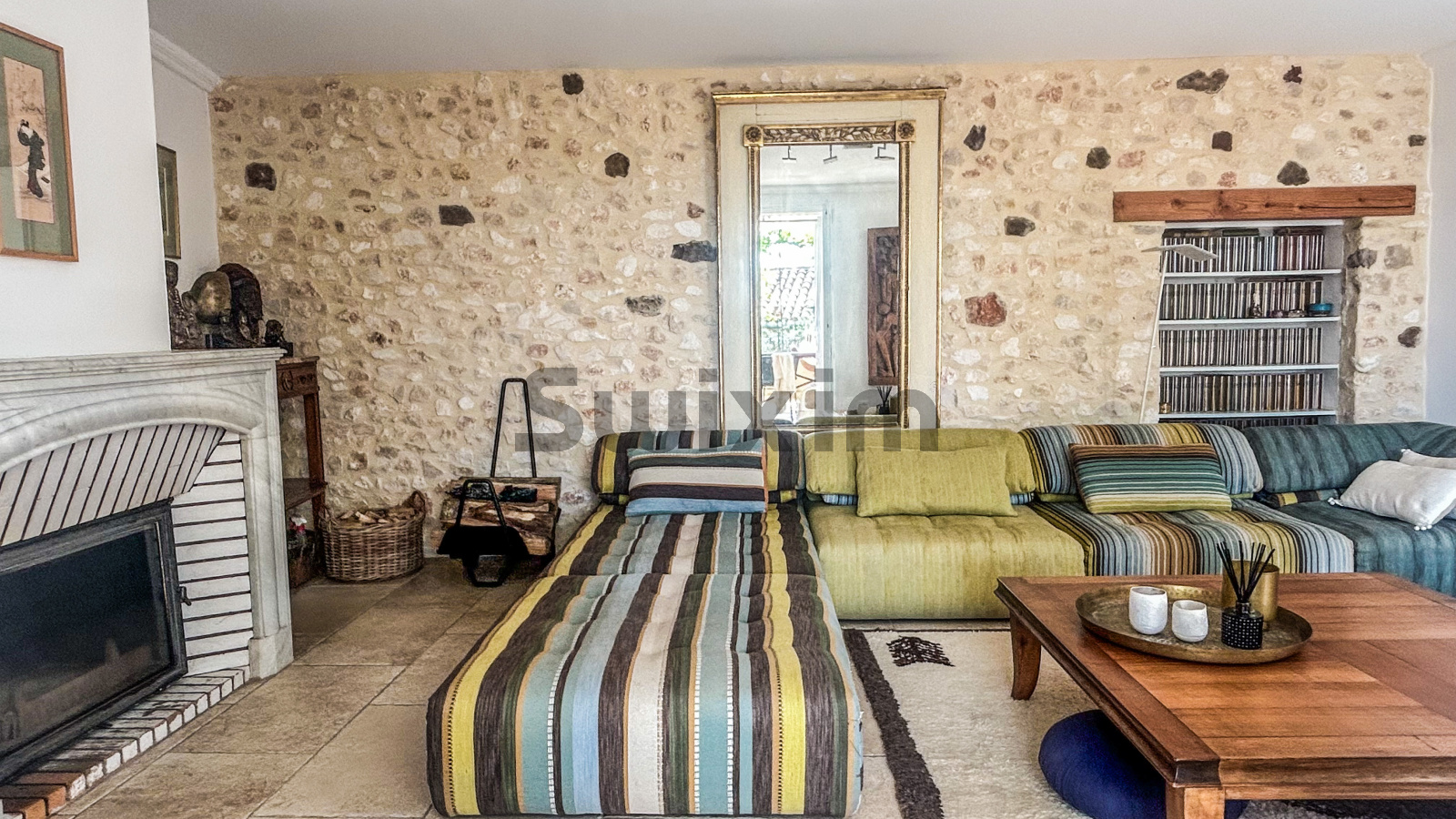À seulement 7 km d’Uzès, cette élégante maison en pierre d’environ 180 m² offre de superbes vues sur la campagne et s’ouvre sur un jardin raffiné aux multiples ambiances.