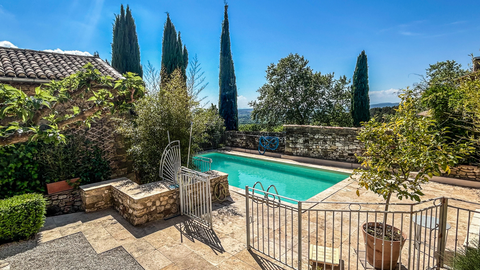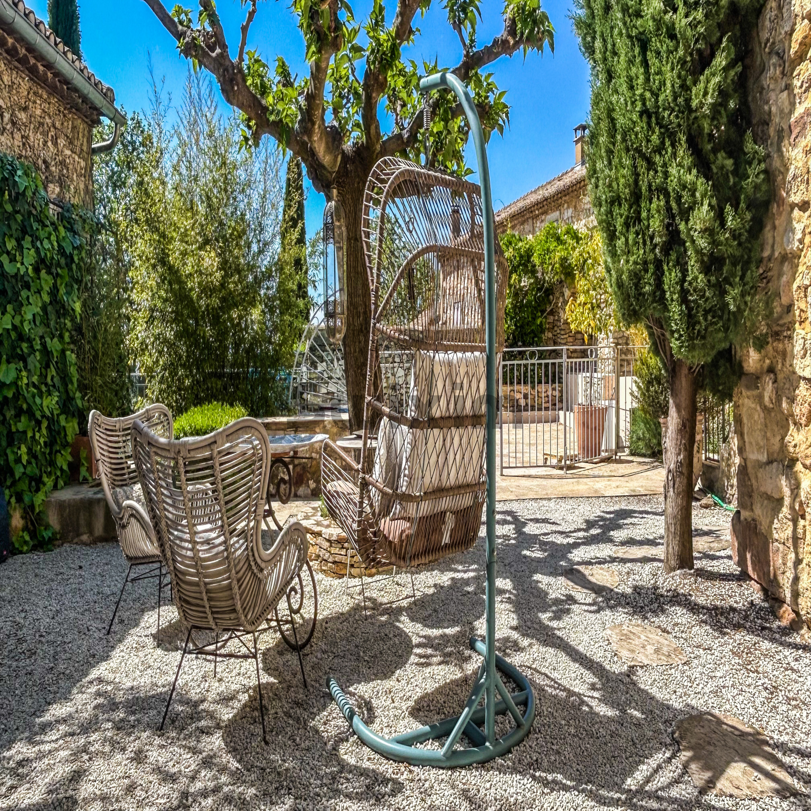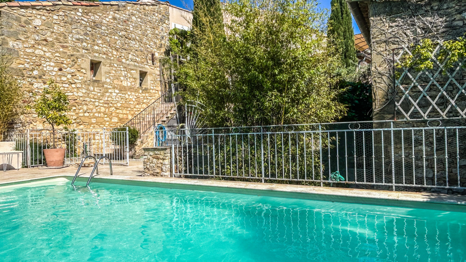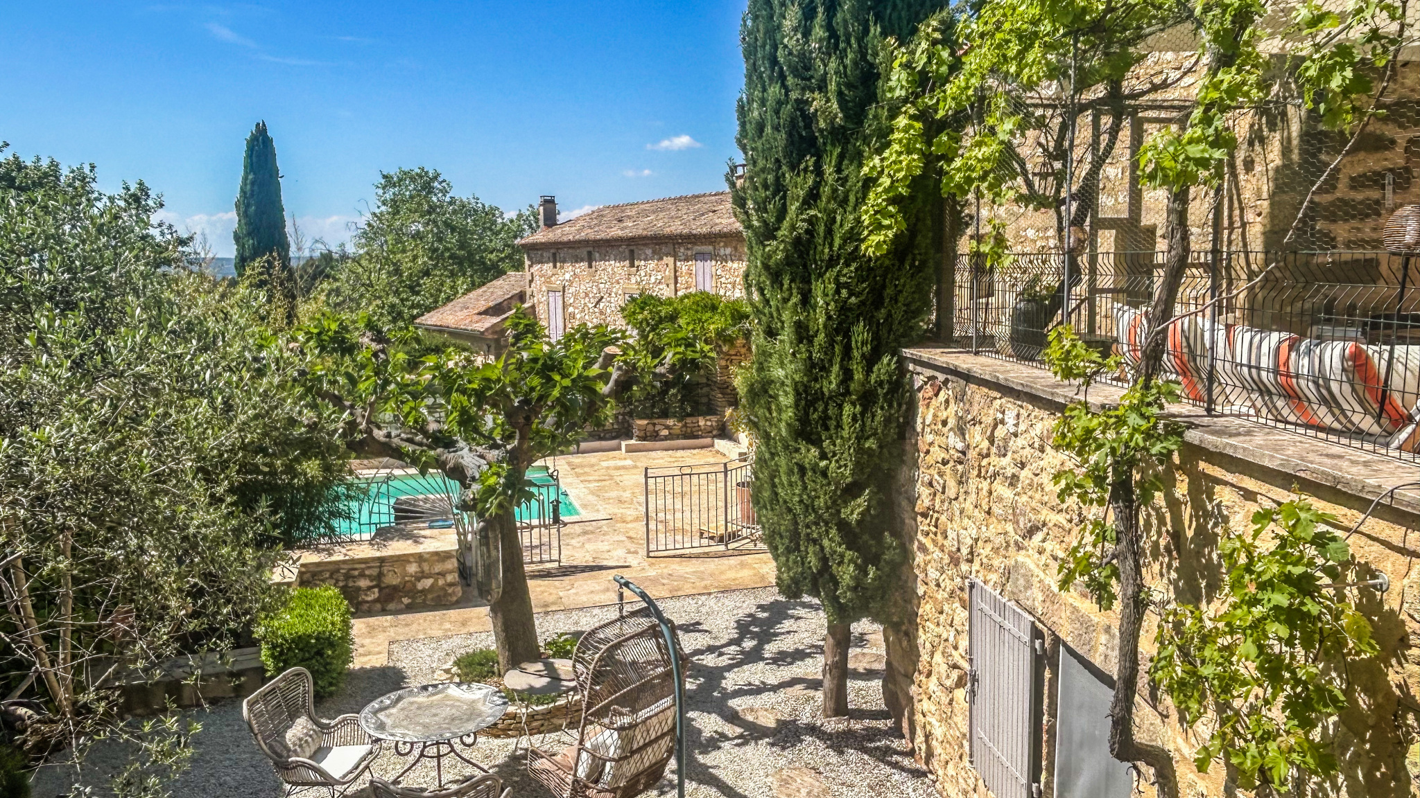 À seulement 7 km d’Uzès, cette élégante maison en pierre d’environ 180 m² offre de superbes vues sur la campagne et s’ouvre sur un jardin raffiné aux multiples ambiances.