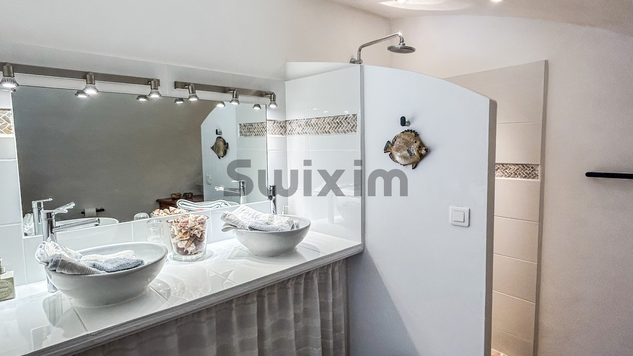 À l’étage, deux chambres spacieuses profitent du même point de vue, complétées par un dressing-buanderie et un WC.