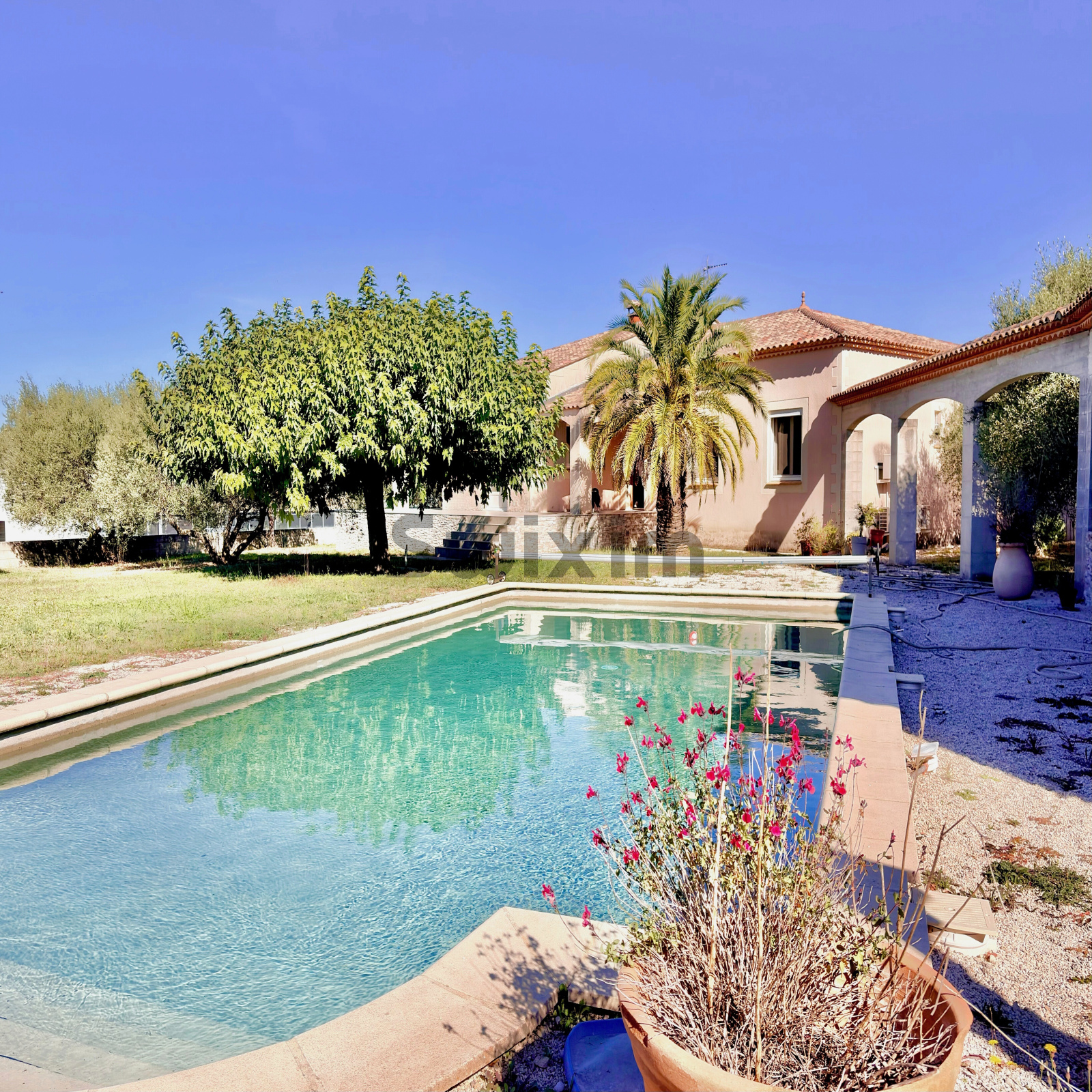 Cette remarquable propriété de plain-pied de 138 m² offrant un cadre de vie exceptionnel allie confort et élégance, située dans un joli village avec commerces à 20 minutes d'Uzès