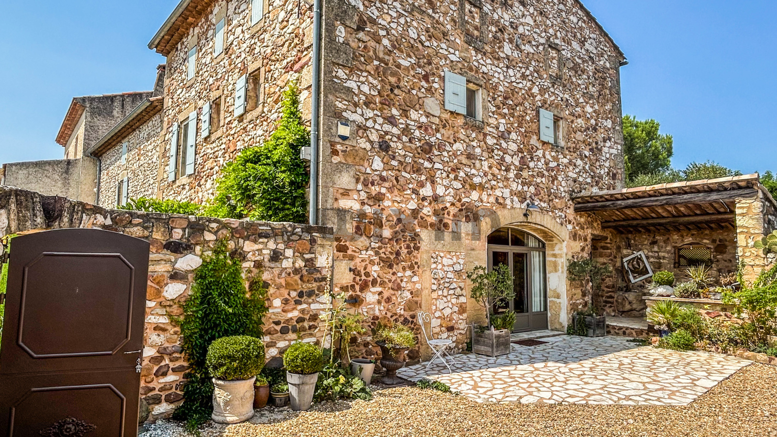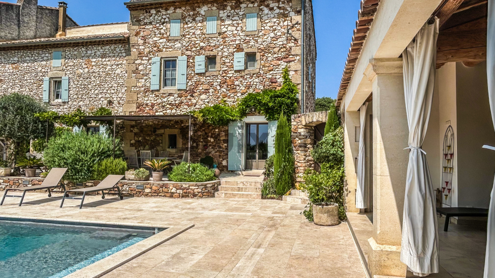 A seulement 12 kms d'Uzès, ce joli mas aux allures provençales joue le jeu de la séduction avec son très beau jardin arboré d'essences méditerranéennes , sa piscine 4x9 m chauffée grâce à une pompe à chaleur , son pool-house ( 28 m2 environ ) aménagé d'une cuisine et salon d'été et des toilettes invités, carport avec prise pour voiture électrique , atelier, terrasse couverte, pergola...tout y est ! Le mas est composé en RDC d'une belle cuisine dinatoire lumineuse et fonctionnelle, d'un confortable salon, une buanderie-toilettes, un grand cellier et une cave. A l'étage, une mezzanine pouvant servir de bureau, une salle de bains-wc communique avec les deux grandes chambres et une très grande suite parentale avec dressing et salle d'eau et wc séparés ( environ 45 m2 ). Le mas offre encore des possibilités d'aménagement avec une annexe avec belle hauteur sous plafond d'environ 37 m2 à aménager au gré de vos envies et un grenier d'environ 50 m2 également aménageable.