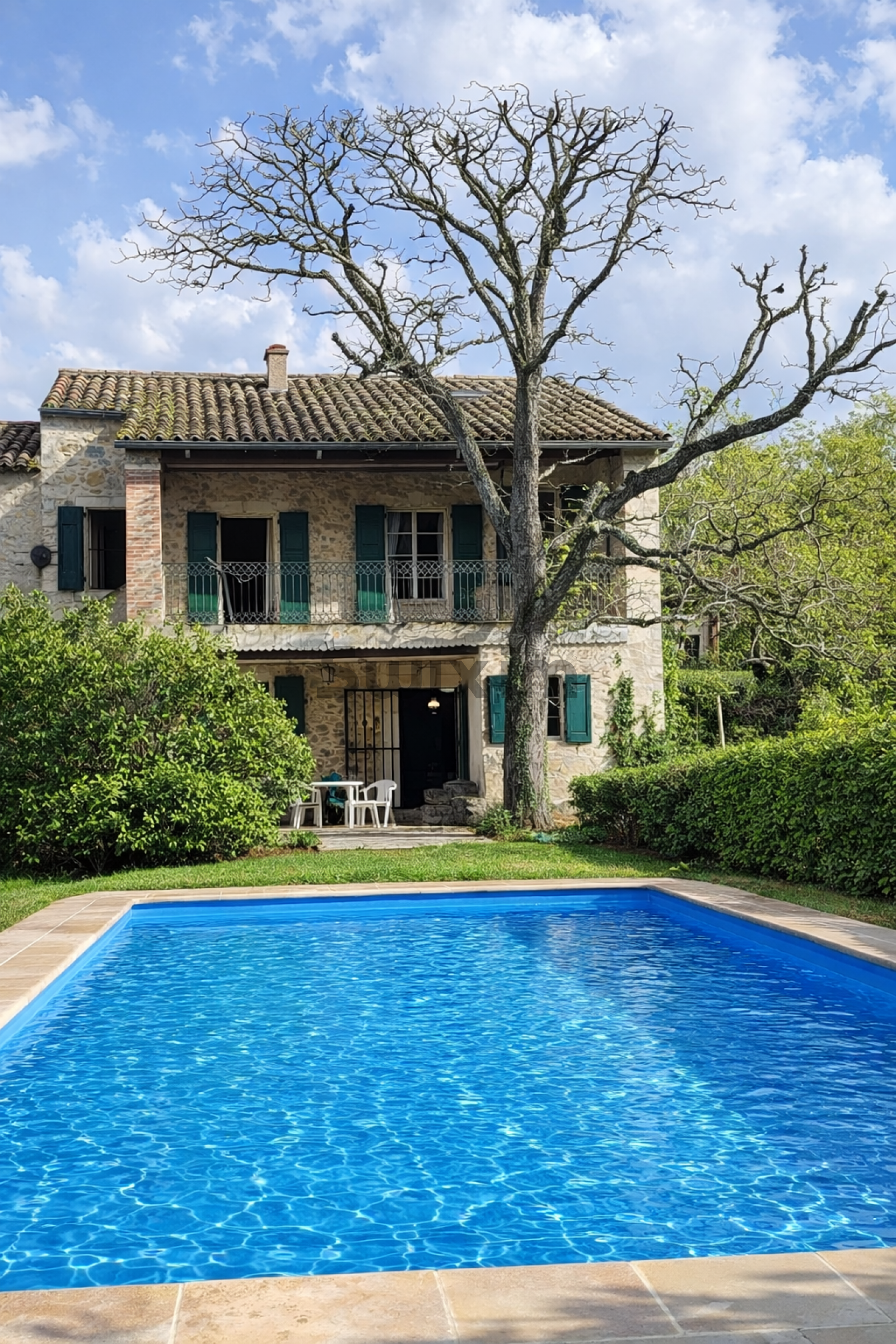 A l'exterieur, le grand terrain permet de profiter pleinement de la nature et d'envisager différents aménagements paysagers. Une piscine exsistante complète l'ensemble, idéale pour les beaux jours.