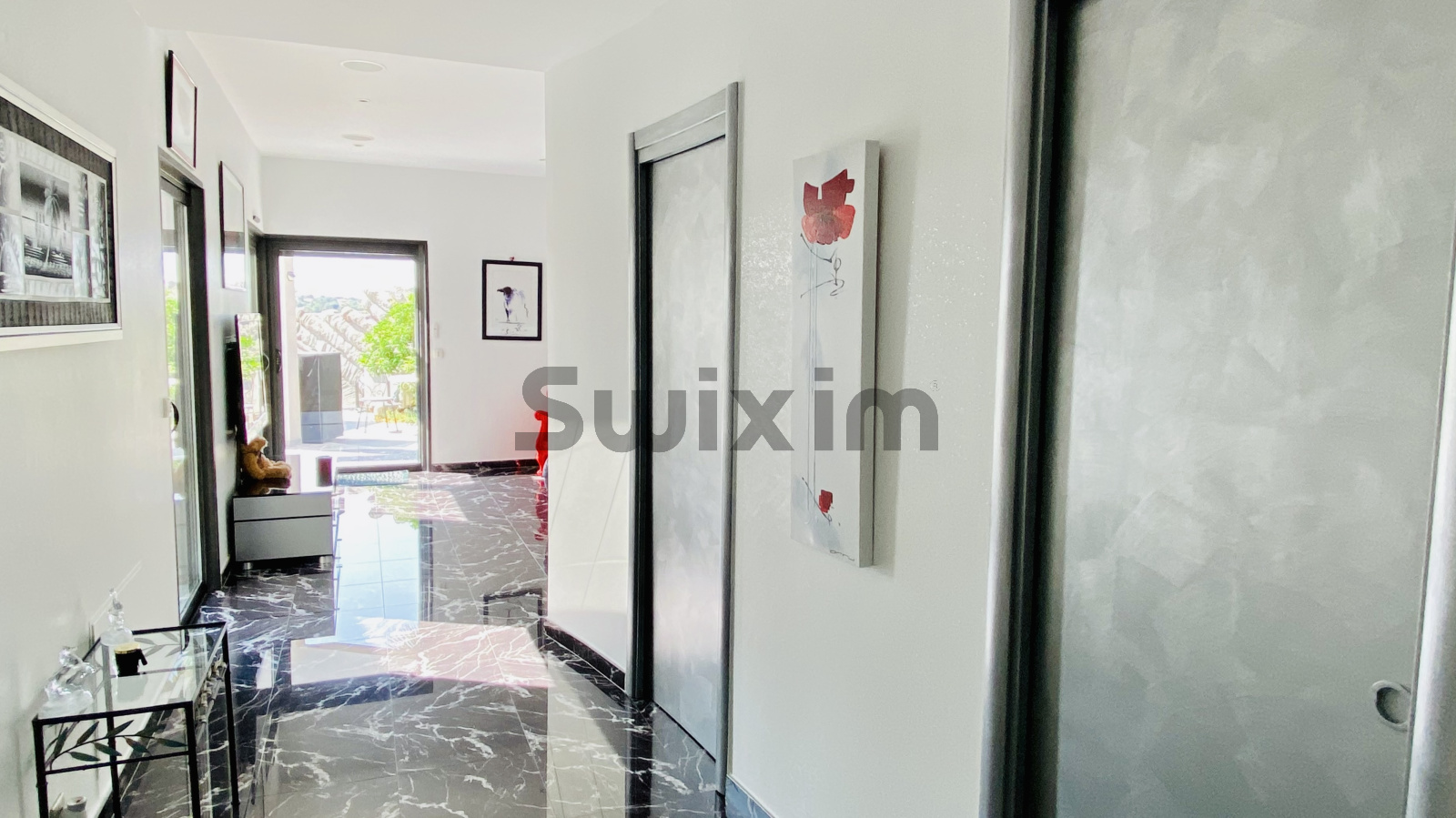 Rez de chaussée : superbe hall d'entrée aux dimensions très généreuses avec de belles ouvertures, une grande pièce à vivre lumineuse, cuisine ouverte (cellier et buanderie ont leur entrée indépendante) sur salle à manger, salon, belle et grande suite parentale, accès piscine, avec 3 dressing, une grande salle de bains originale, un wc indépendant.