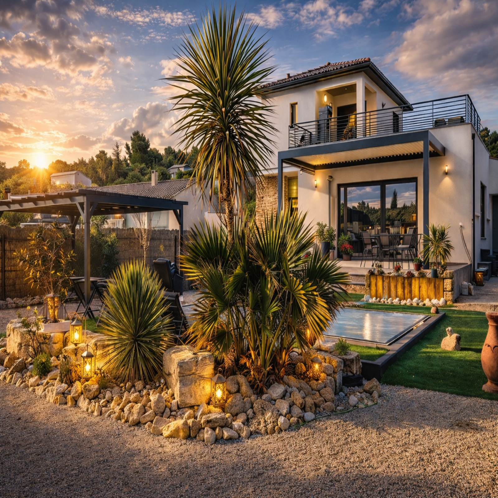 L'extérieur est tout aussi bien aménagé ; piscine au sel 6,2 X 3,6 m, atelier d'environ 20 m2, carport deux voitures équipé de panneaux photovoltaïques, terrasse nord aménagée avec évier extérieur pour profiter des chaudes journées d'été et stationnement pour plusieurs voitures, portail électrique et parcelle entièrement clôturée.