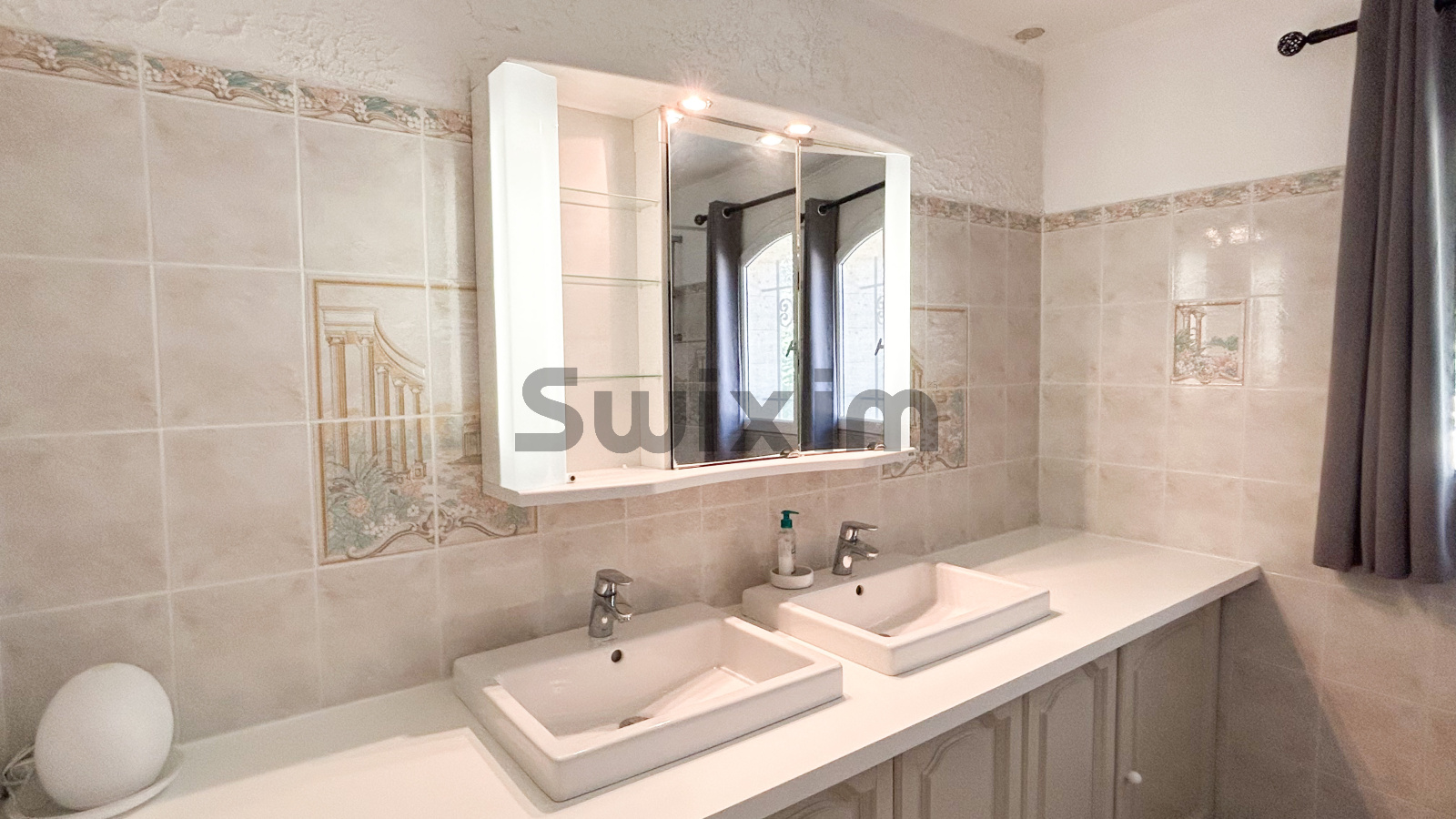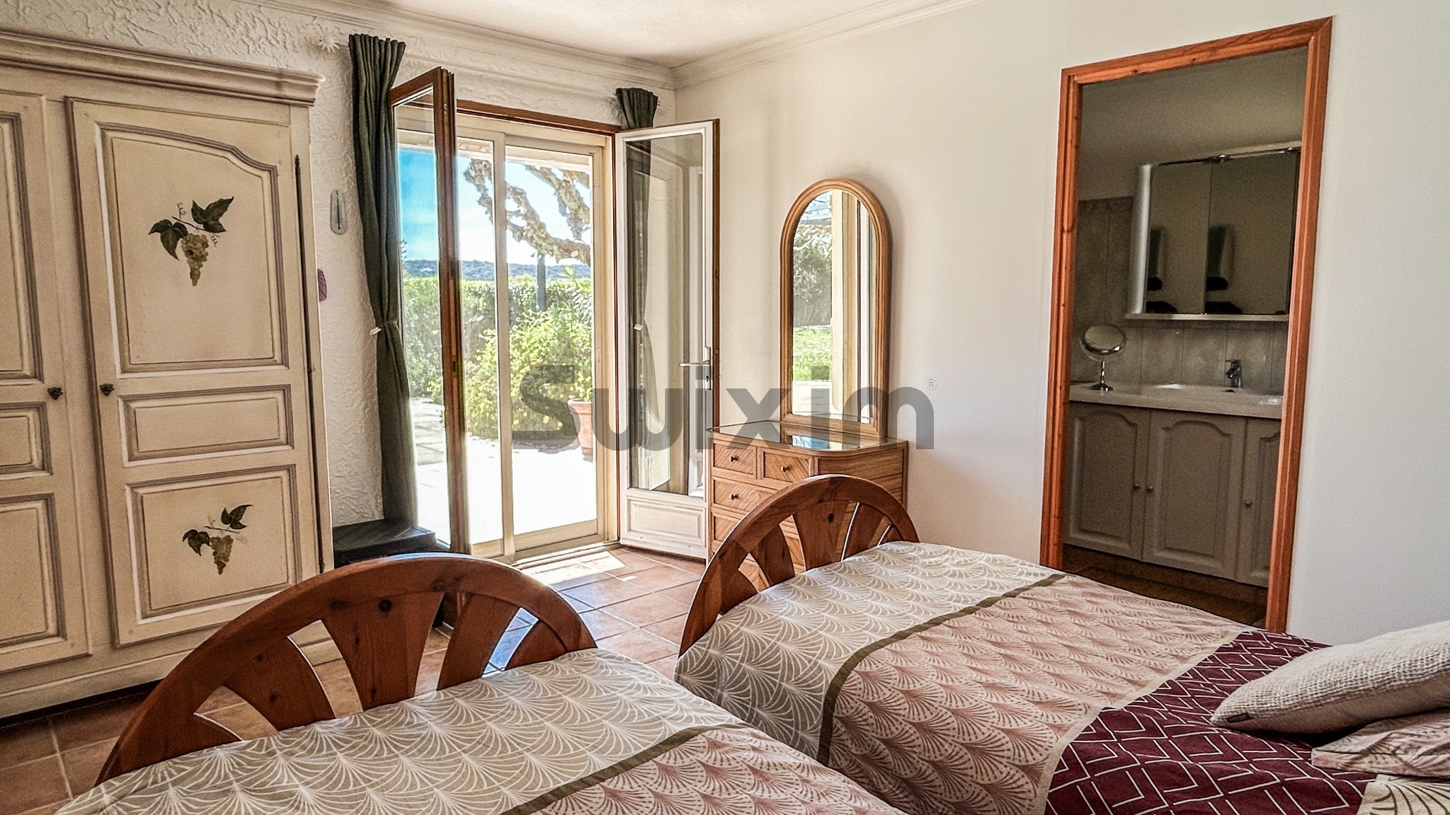 - Deux belles chambres supplémentaires toutes ouvertes sur le jardin par des portes-fenêtres et une salle de bains généreuse.