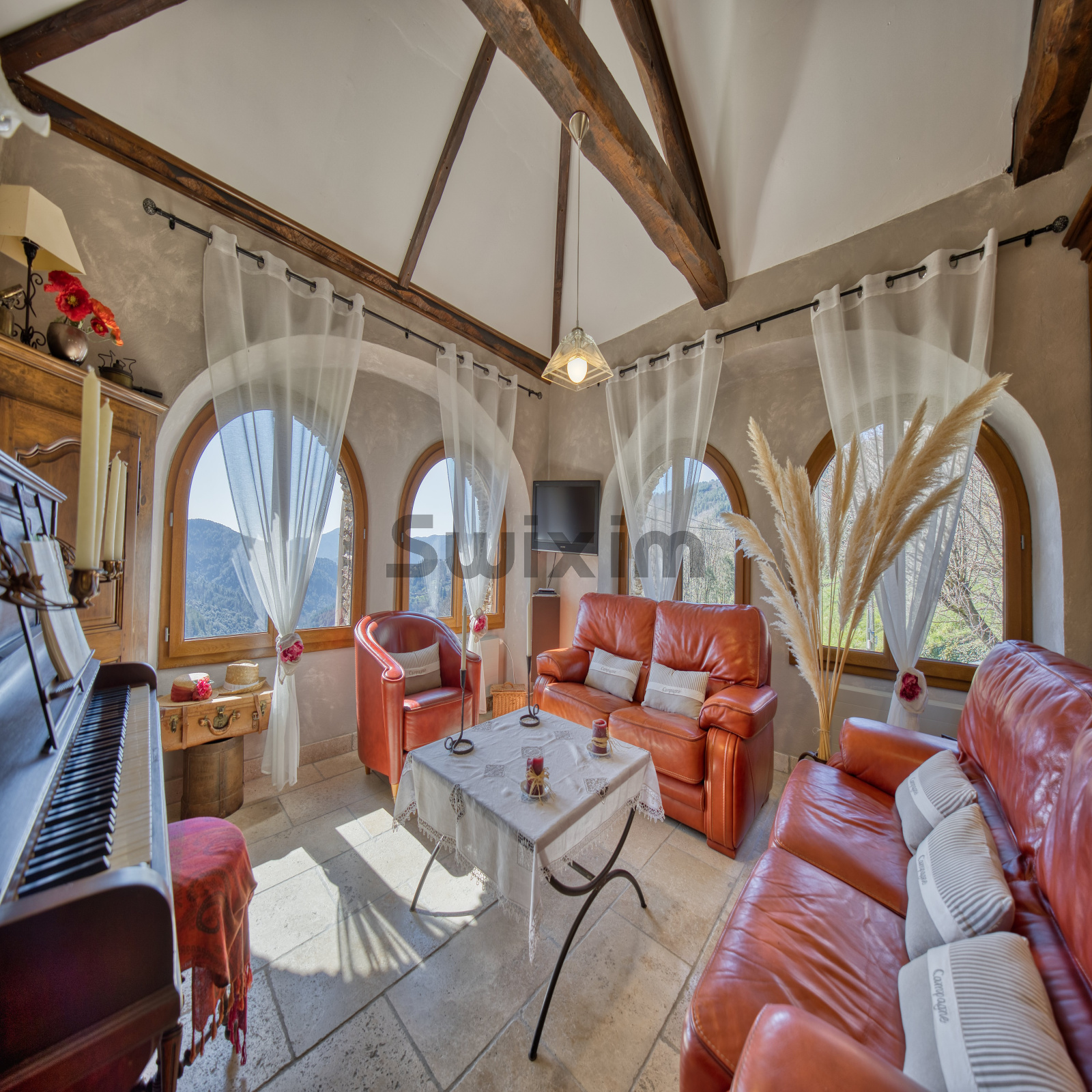 Salon d'environ 35m², idéalement exposé Sud, vue panoramique sur la vallée.