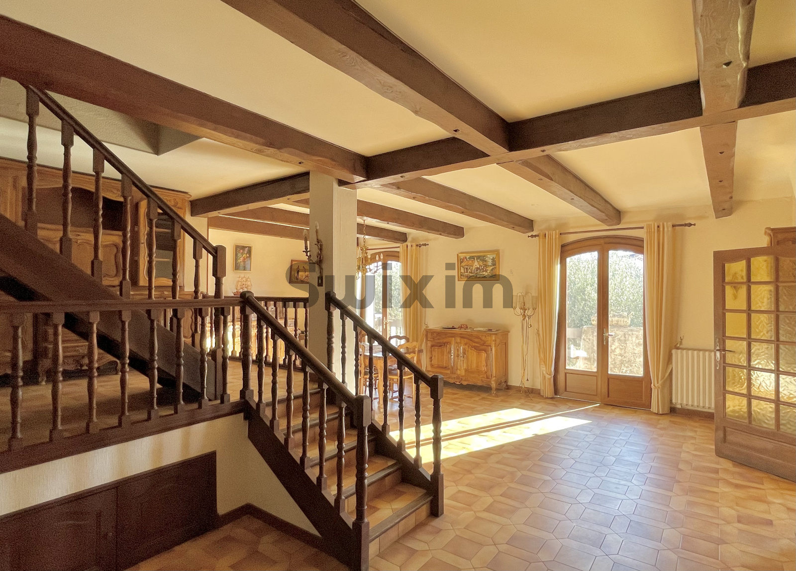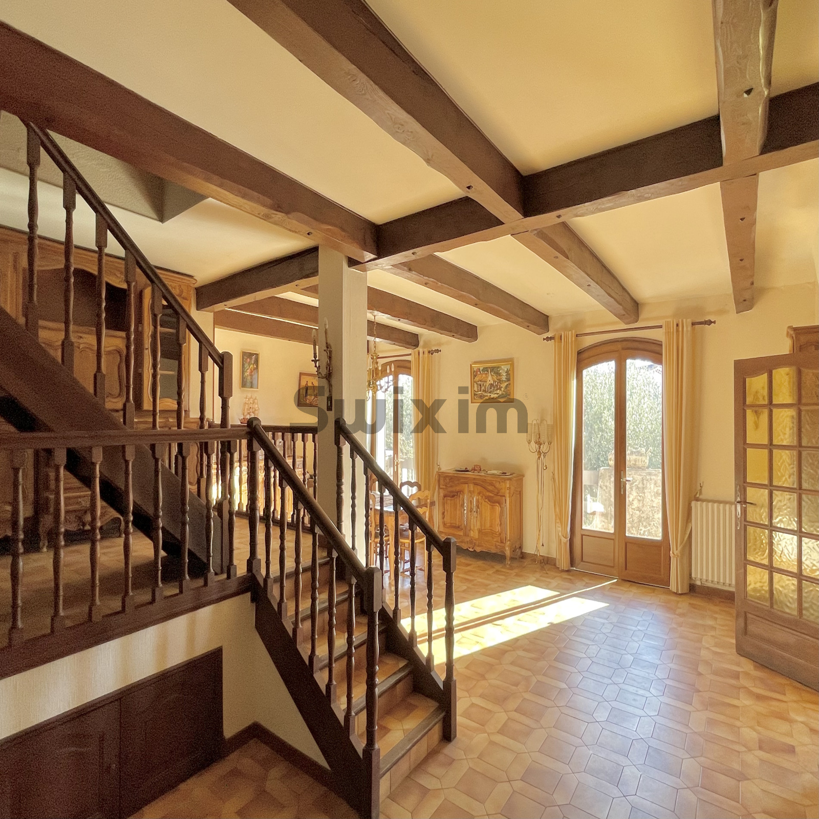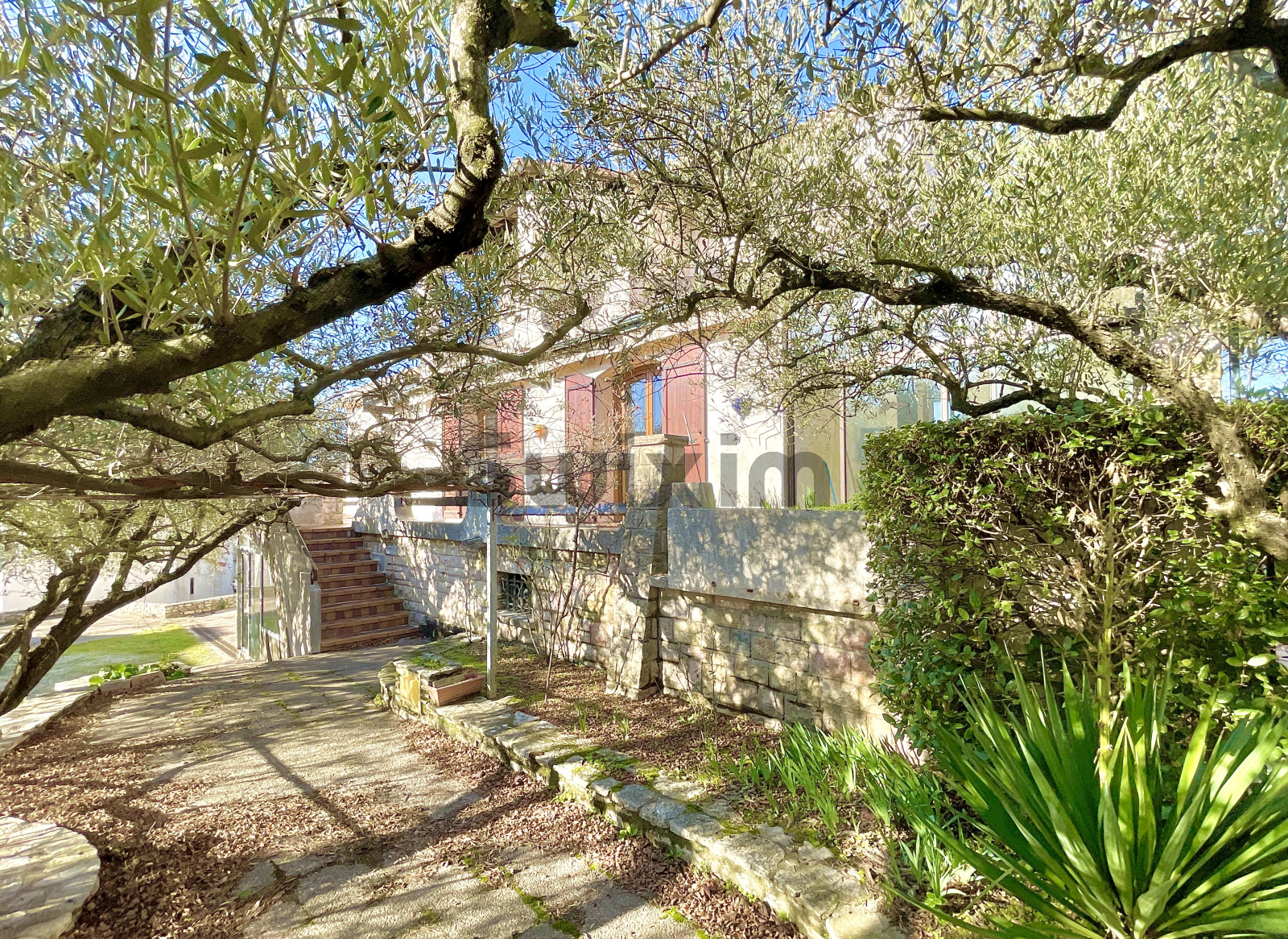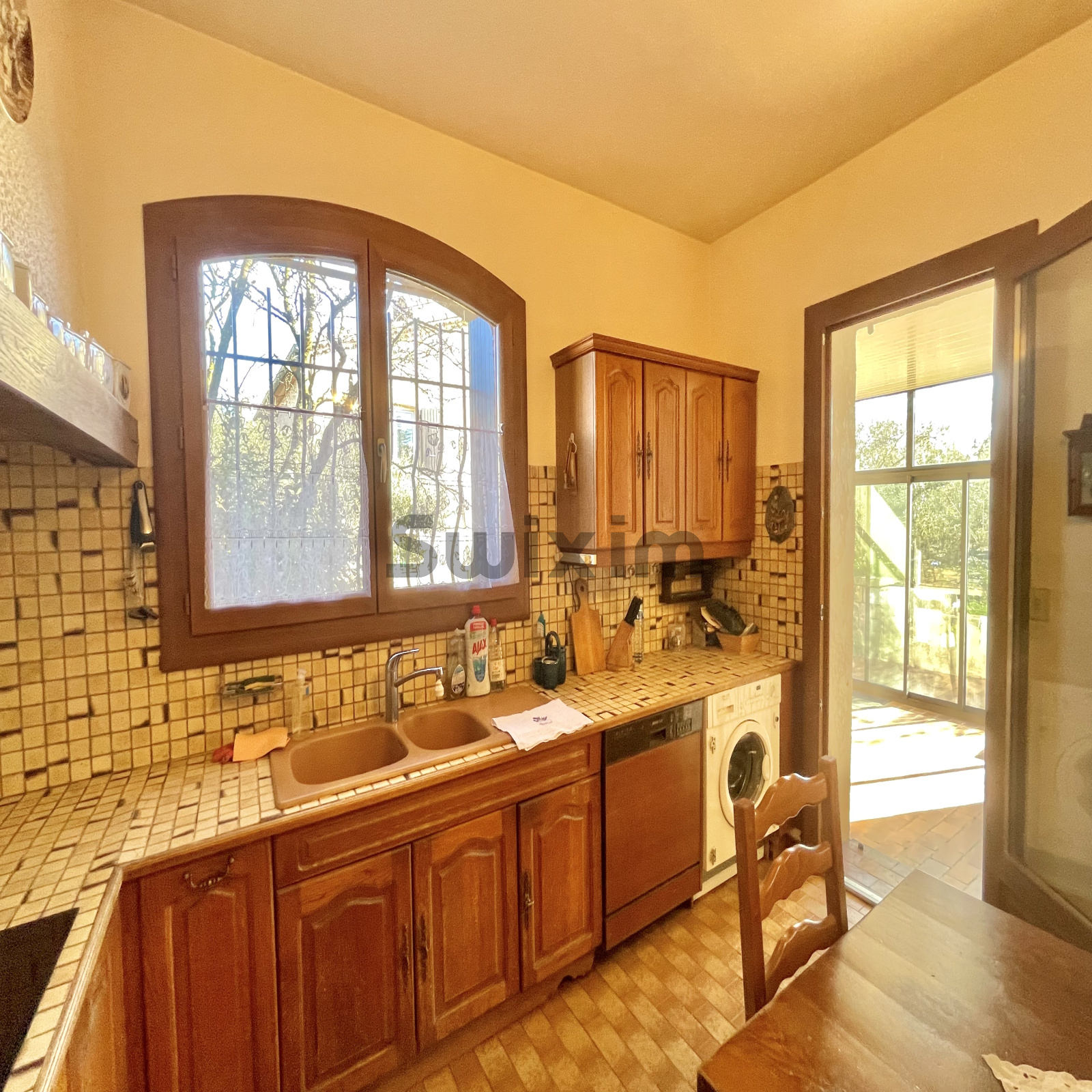 Proche du centre ville avec commerces de proximités accessibles à pied, cette villa d'environ 145m2 entourée de verdure. Ce bien situé au calme dans une impasse ne manquera pas de vous interpeller. De construction traditionnelle cette villa développe au rez-de-chaussée, un beau salon séjour d'env 55m2 pourvu d’une cheminée avec insert accessible de la terrasse, une cuisine attenante entièrement équipée ouverte sur une véranda, 2 chambres, une salle d’eau, WC. A l'étage, 2 chambres avec terrasse, une salle de bain, WC séparé. Le sous-sol d’environ 86m2 est doté d’une double porte de garage électrique et de nombreuses caves. Menuiserie double vitrage PVC, volets bois, chauffage au fuel, présence d’une climatisation réversible au niveau du hall d’entrée et dans la pièce de vie. Le terrain d’environ 850m2 arboré d’oliviers est entièrement clos.