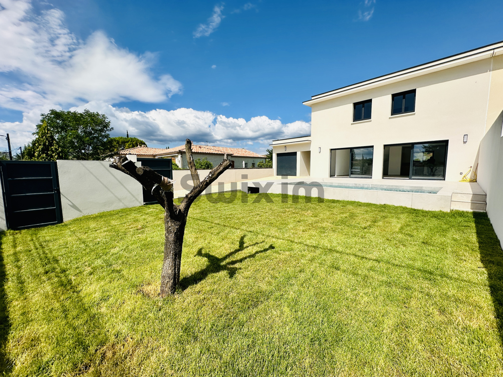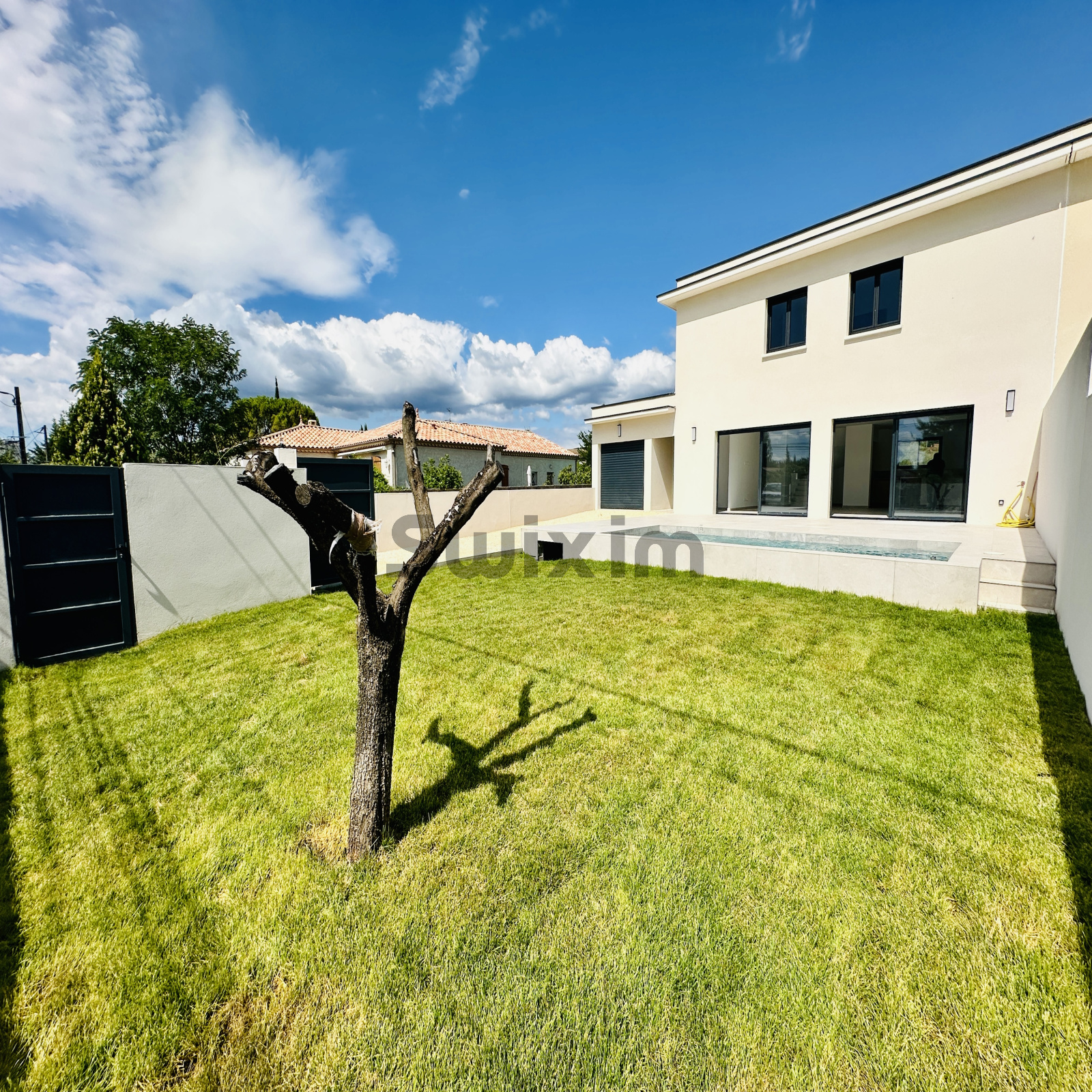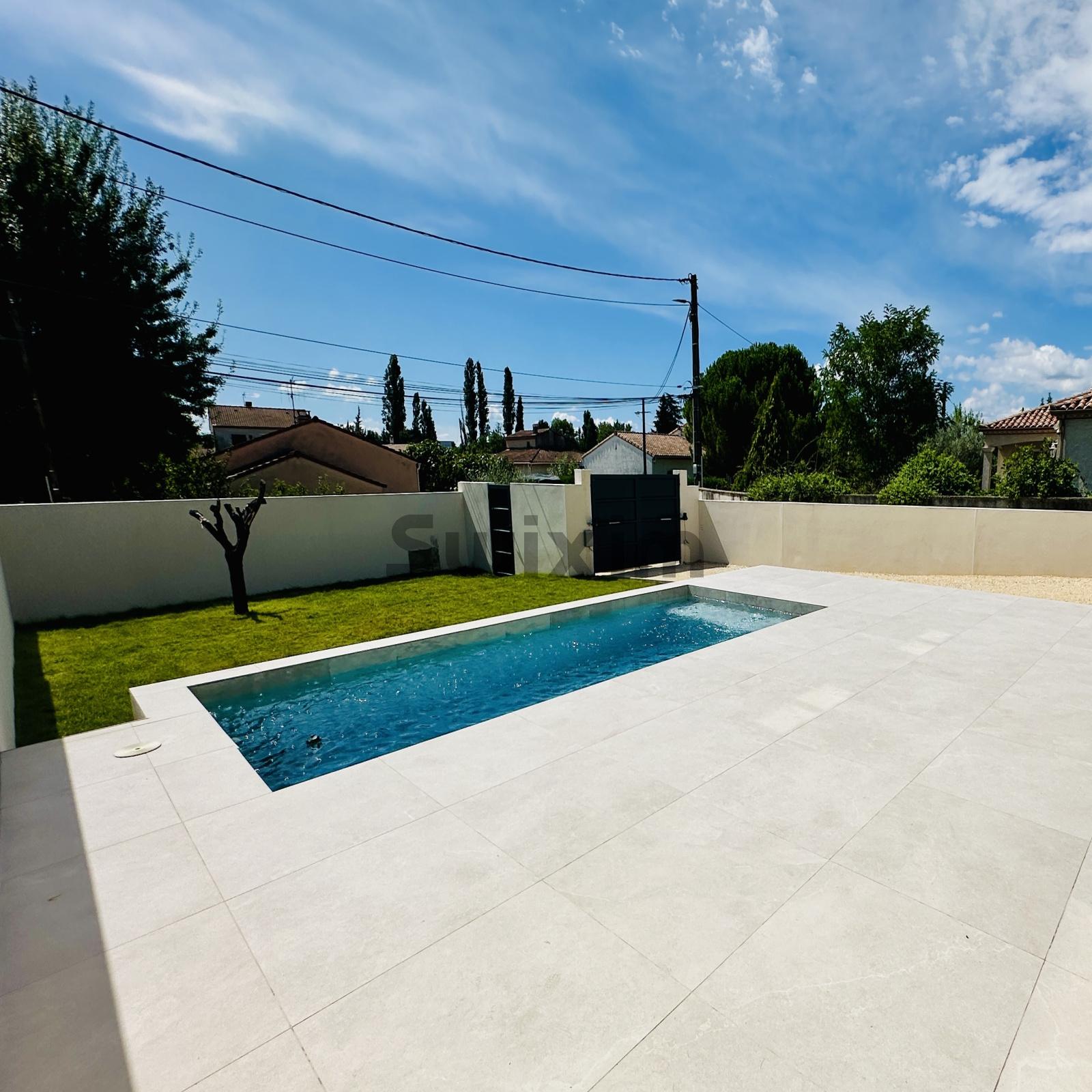 Les extérieurs invitent à la détente grâce à une piscine 6 × 3, bordée d’une terrasse carrelée, ainsi qu’un jardin à l’avant comme à l’arrière, doté d’un arrosage automatique. Un garage isolé et carrelé, avec portail motorisé, vient compléter ces prestations de qualité. Le terrain entièrement clos, équipé d’un portail électrique et d’un portillon, assure sécurité et tranquillité.
