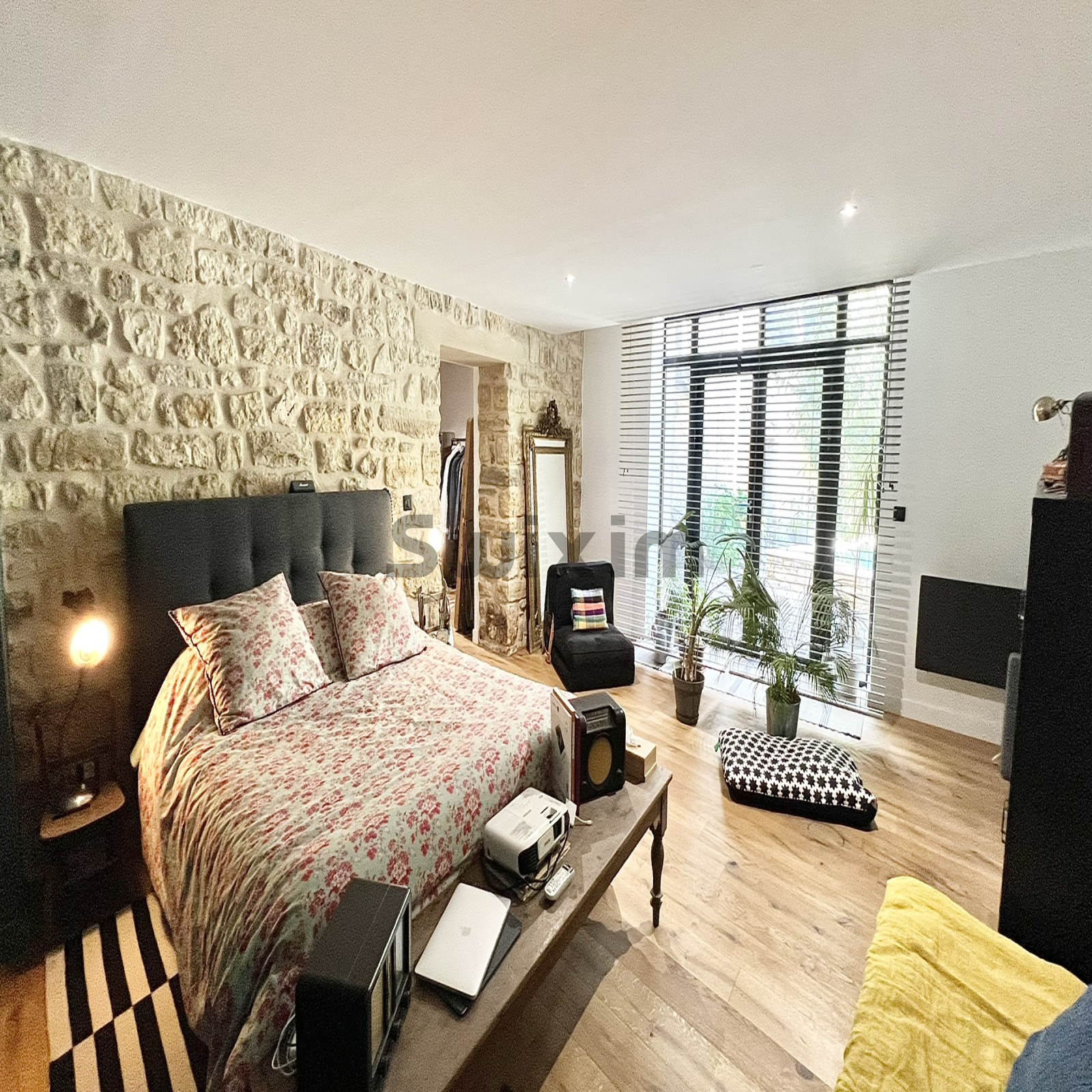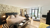 Au premier étage, elle est composée d'une suite parentale, d'une seconde chambre, d'une salle de bain et sanitaire séparé, d'un séjour ouvert sur sa cuisine avec sa terrasse intimiste en plage de bois et d'un atelier de création artistique.
