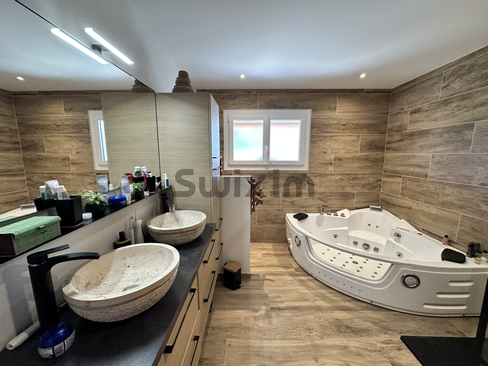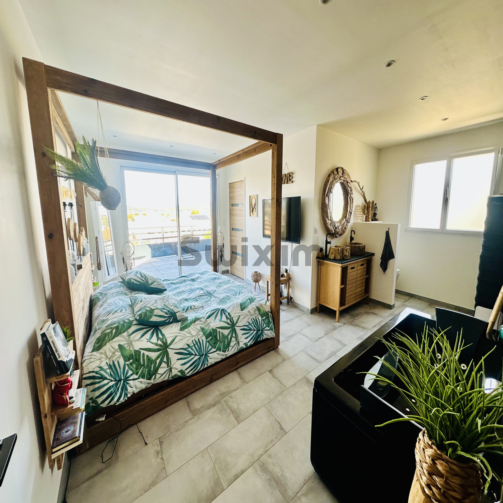À l'étage une suite parentale très spacieuse avec sa salle de bain donnant directement sur une très belle terrasse privative avec une vue très agréable .