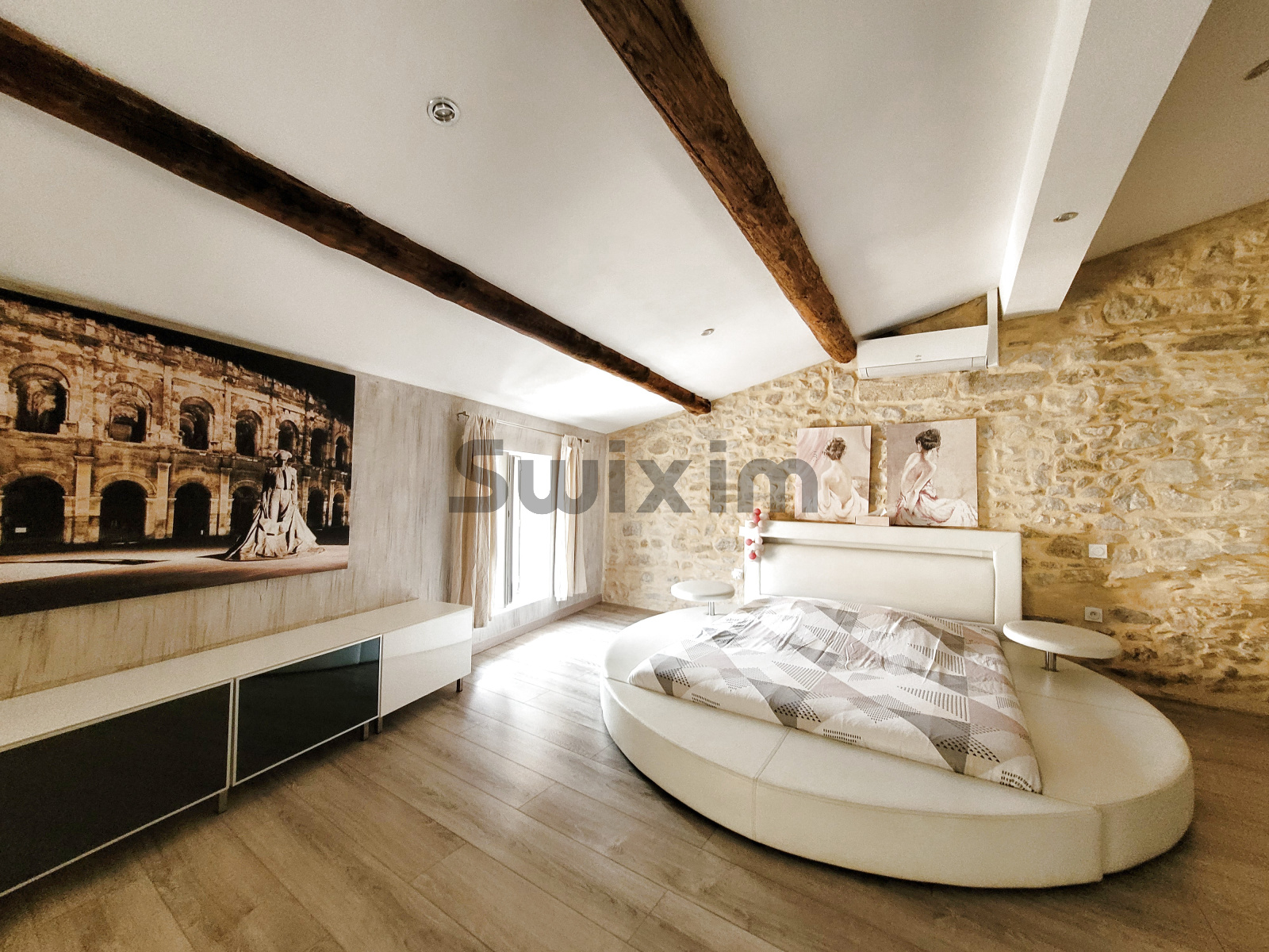 Swixim international vous propose, dans le charmant village de Lédenon, à une vingtaine de minutes d'Uzès et du centre de Nîmes, cette maison de village d'environ 190m² sur 3 paliers, une cour intérieur avec bassin, un très beau et grand toit terrasse bénéficiant d'une vue sur le clocher du village.