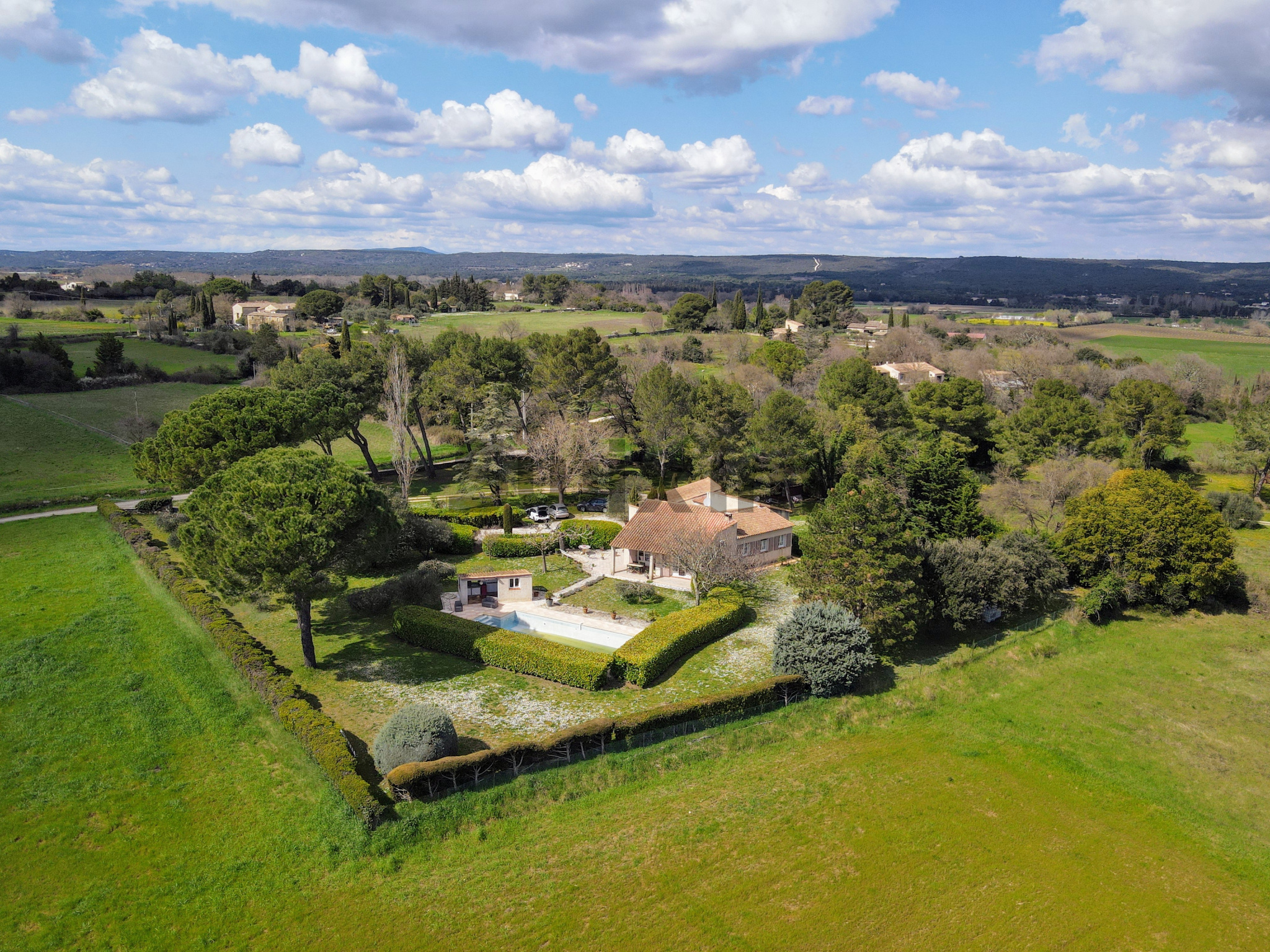 Superbe piscine dominante et sans vis-à-vis, une terrasse de 100 m², sur un terrain de 2180 m² totalement clos