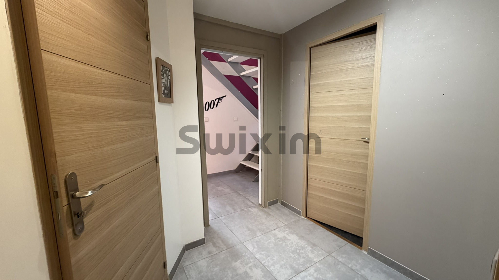 La maison propose trois chambres, dont une au rez-de-chaussée, ainsi qu’une salle de bains équipée d’une baignoire et d’une douche. Un WC indépendant et une buanderie viennent parfaire l’agencement.