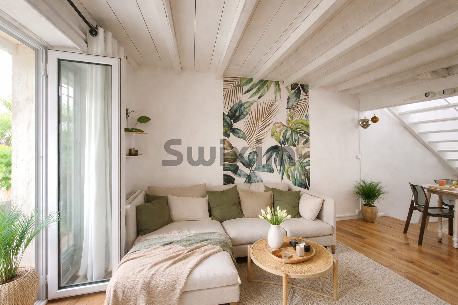 Un très beau séjour et sa cuisine entièrement équipée, de deux belles chambres , une salle d'eau, et le coup de coeur ... une très jolie terrasse tropézienne pour les beaux jours.