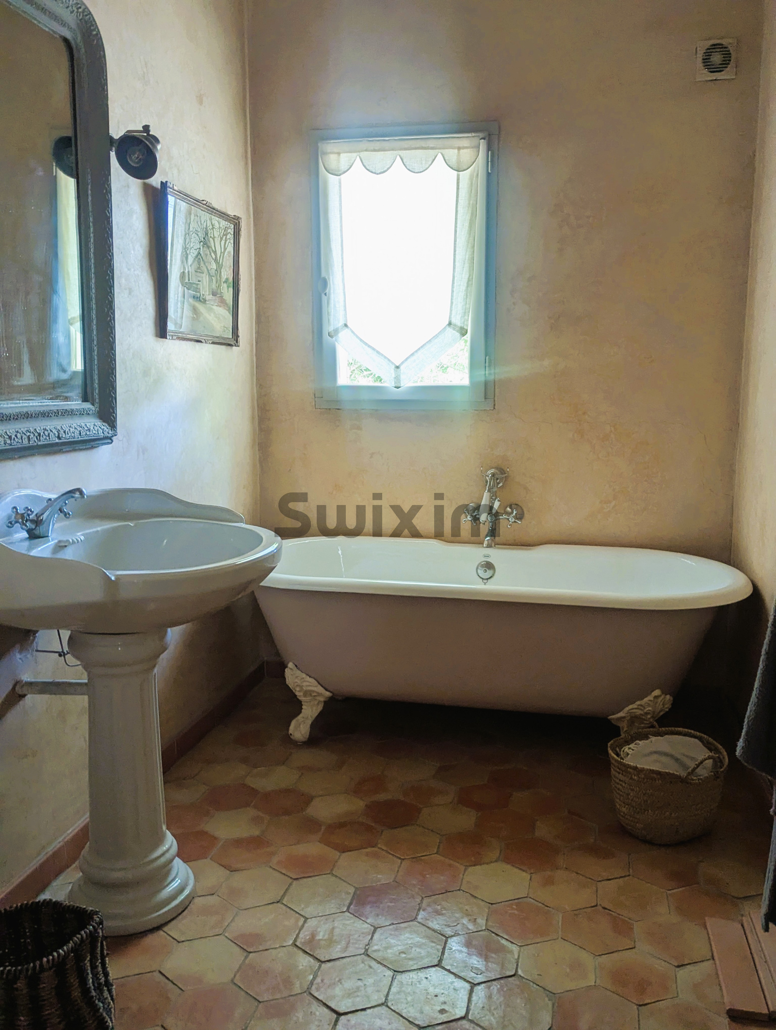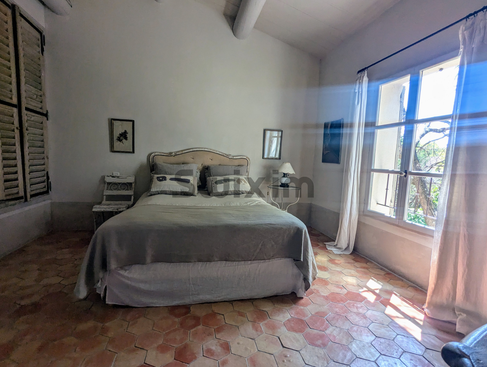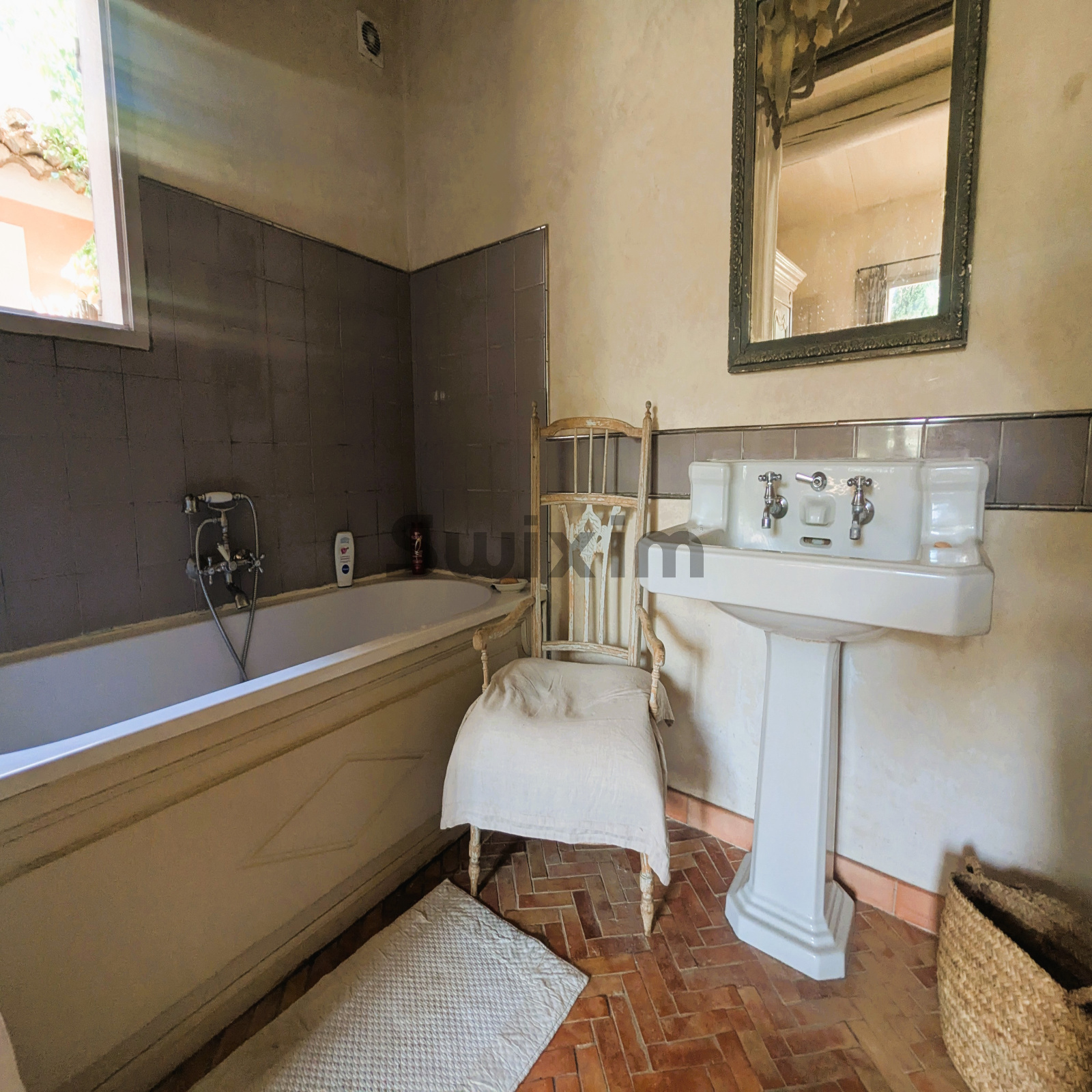 La qualité de sa construction : Si c’est une construction récente (20 ans), avec donc tout le confort qui va de pair, elle a tout d’un petit mas authentique : Ses plafonds bois à la française et en rampants au 1er étage, son carrelage en terre cuite, ses enduits. On s’y méprendrait si on l’ignorait…