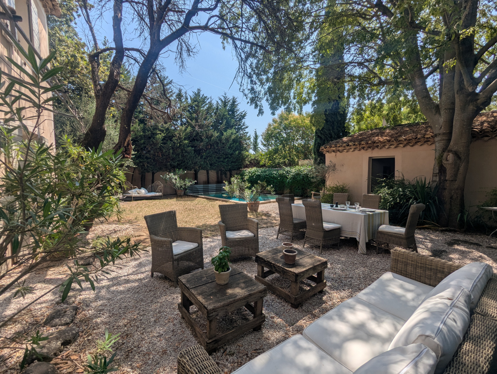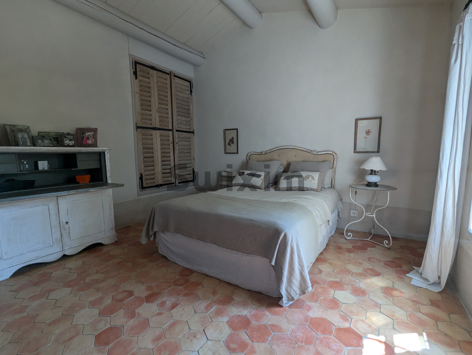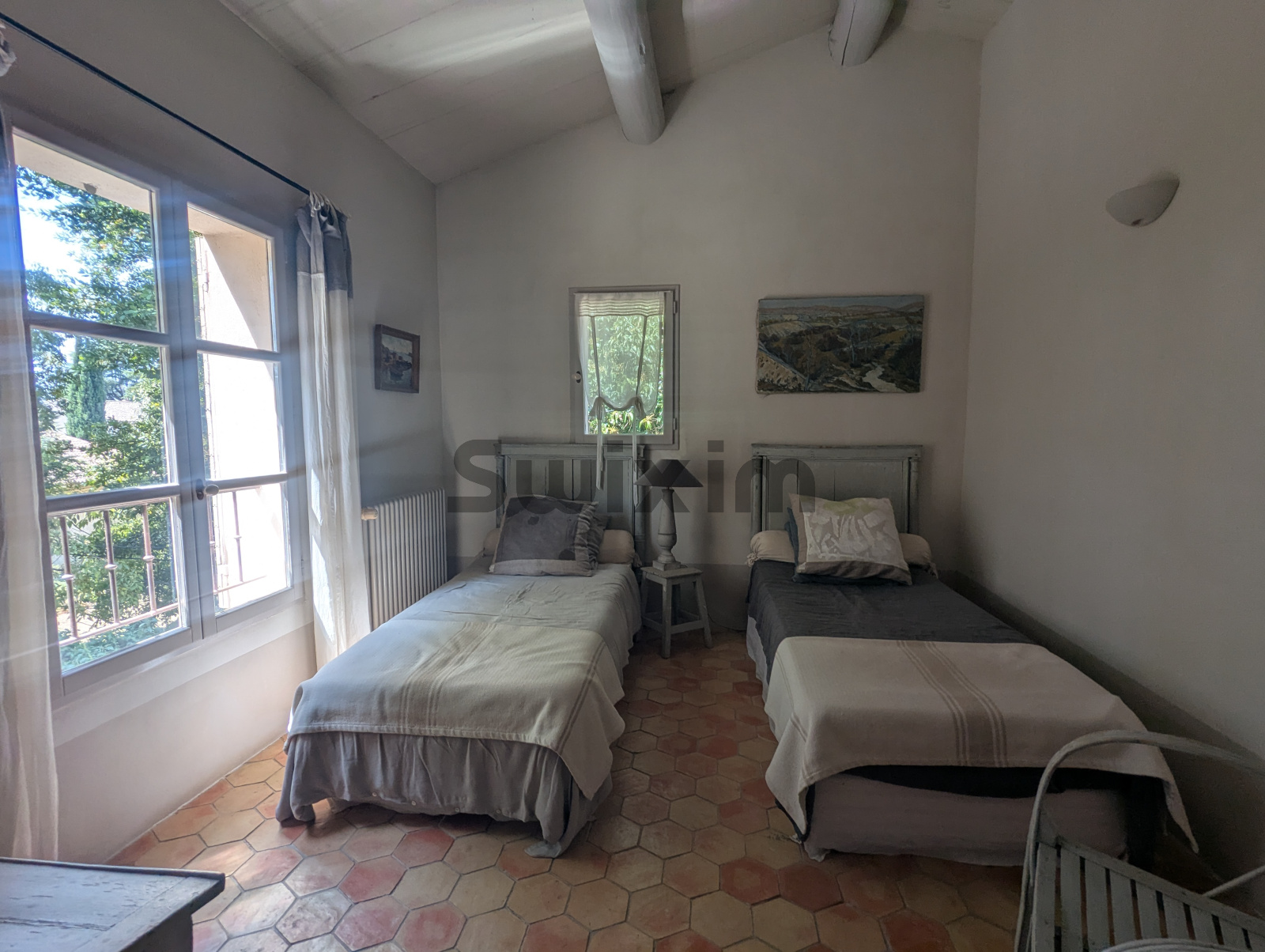 La qualité de sa construction : Si c’est une construction récente (20 ans), avec donc tout le confort qui va de pair, elle a tout d’un petit mas authentique : Ses plafonds bois à la française et en rampants au 1er étage, son carrelage en terre cuite, ses enduits. On s’y méprendrait si on l’ignorait…