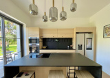Cette maison de charme rénovée d'environ 180m2 offre un cadre de vie authentique. Edifié sur un terrain de plus de 1800m2, elle bénéficie d'un environnement de qualité au calme, proche des commerces. Passé le portail le ton est donnée : murs en pierres apparentes, de larges baies vitrées, terrasses en pierres... Au rez-de-chaussée la vie s'articule autour de ce beau salon séjour lumineux équipé d’un poêle à bois, avec des baies vitrées coulissantes qui offrent une transition fluide entre l'intérieur et l'extérieur. La cuisine entièrement aménagée allie fonctionnalité et esthétisme, complétée par une grande chambre lumineuse, et une salle d'eau. Plancher uniforme bois. A l'étage un espace doté d'une belle hauteur sous plafond : 3 grandes chambres (dont une avec salle d'eau) se partagent une grande salle de bain. Climatisation réversible.