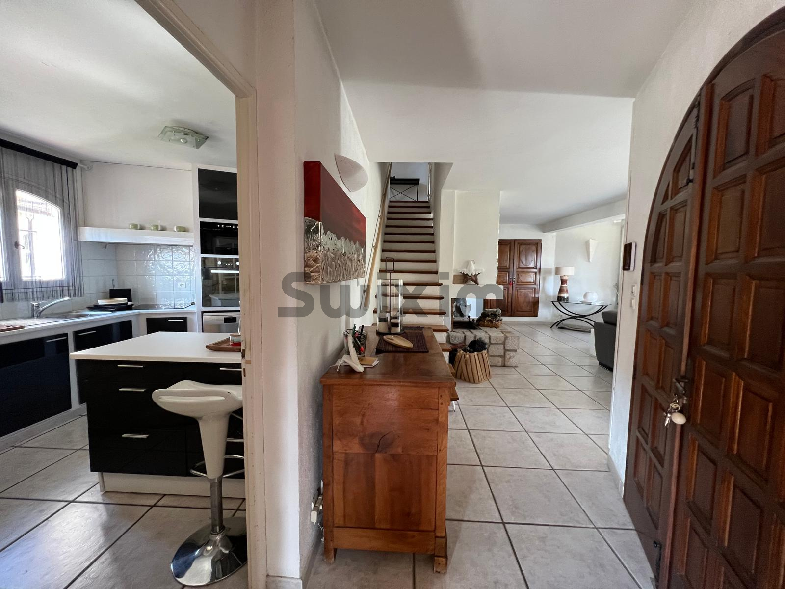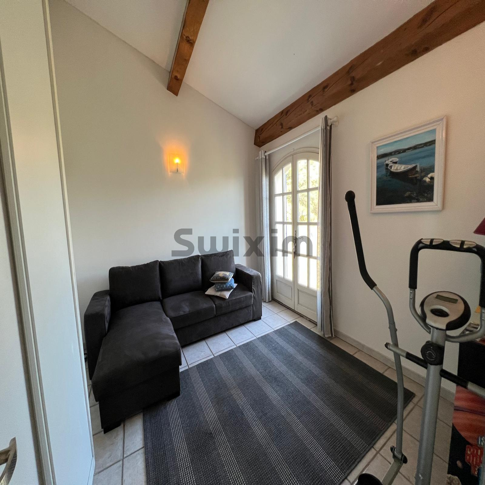 Ce bien bénéficie de très belles prestations avec chauffage au sol, climatisation réversible, nombreuses terrasses, solarium, abri voitures, atelier et salle de musique. Une piscine traditionnelle de 10 x 4 complète l’ensemble.