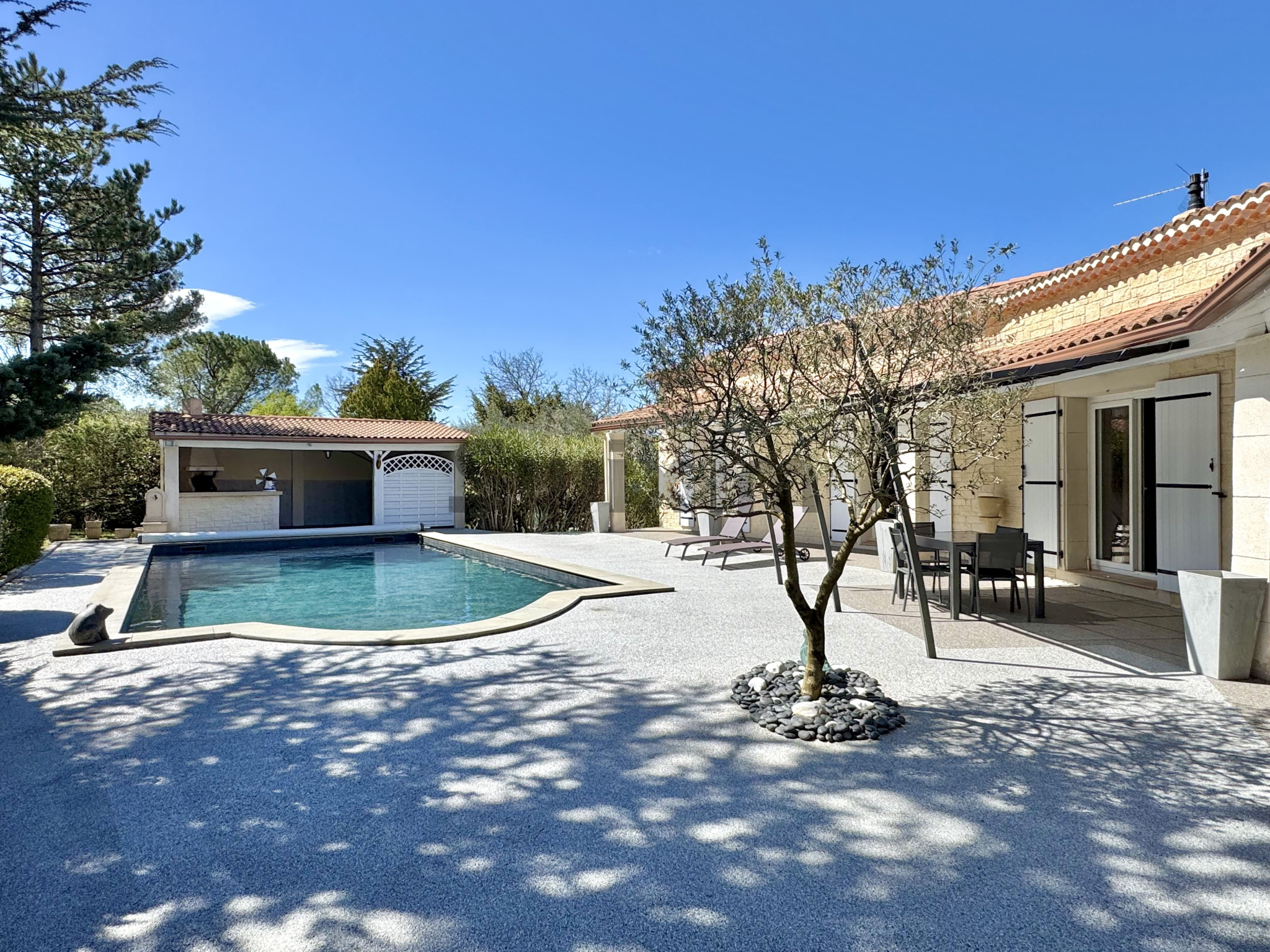 À l’extérieur, le jardin soigneusement aménagé accueille une piscine 10x5 et un pool house, idéal pour profiter des beaux jours à l'abris des regards.