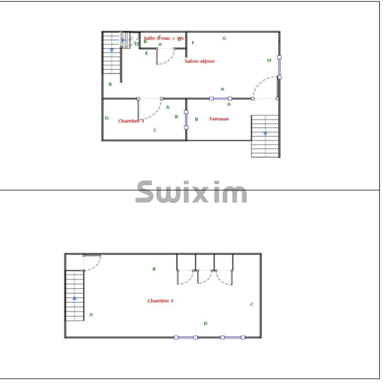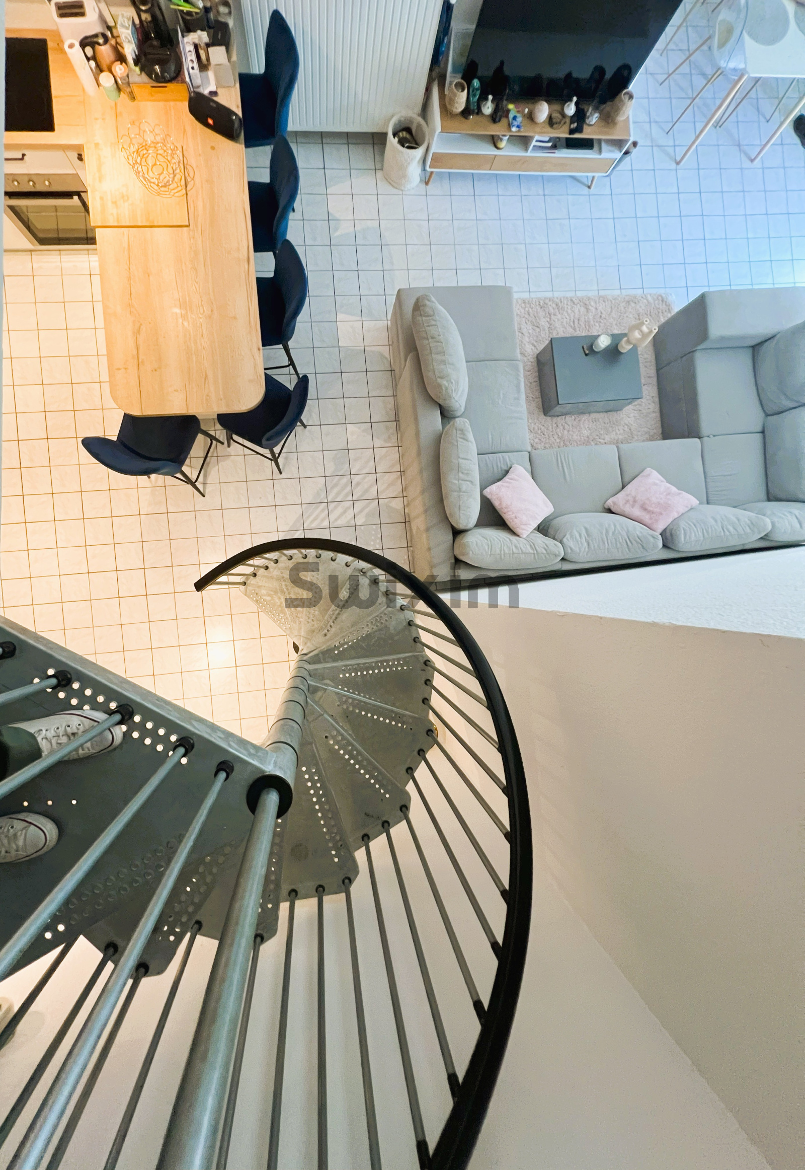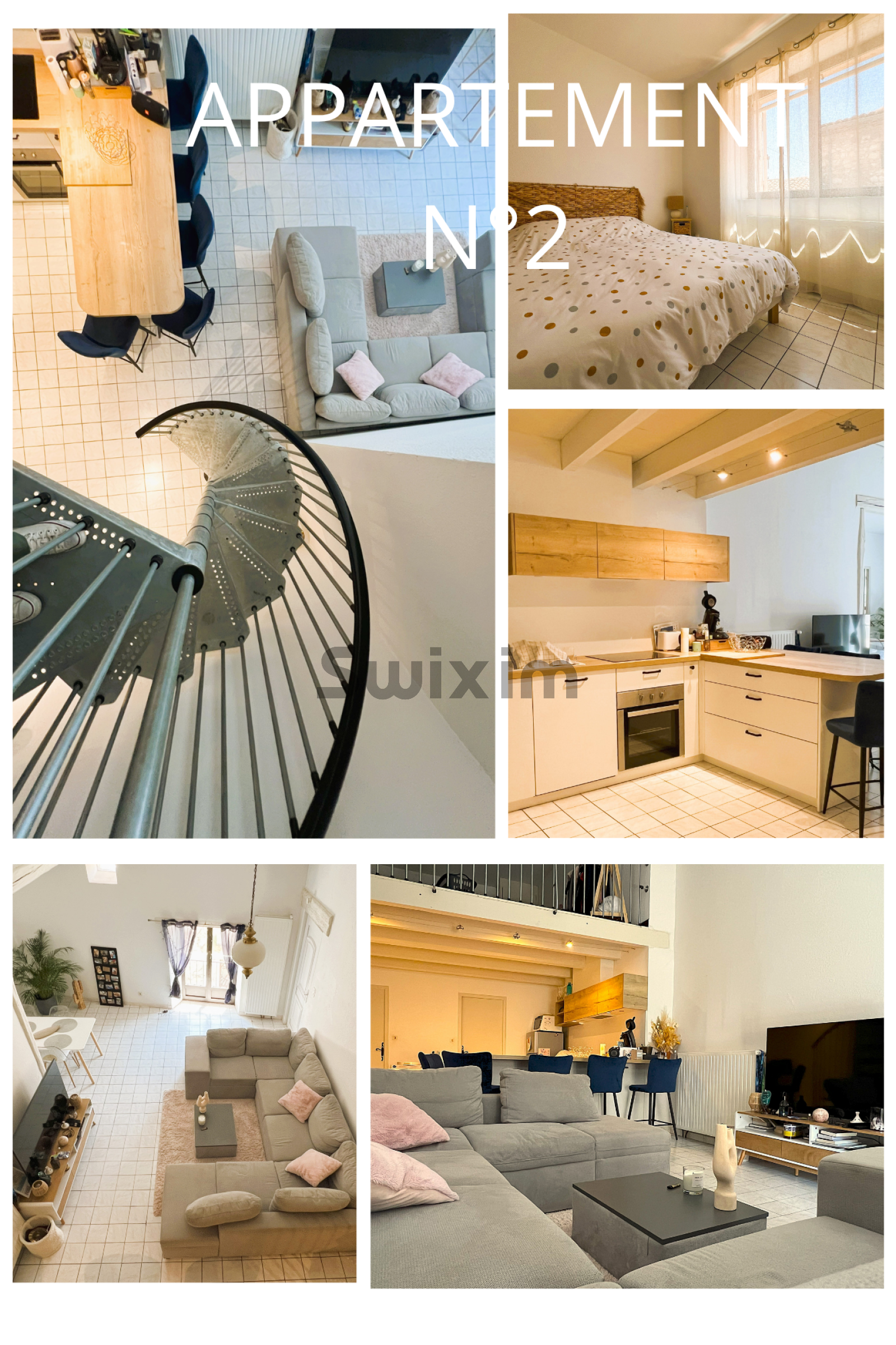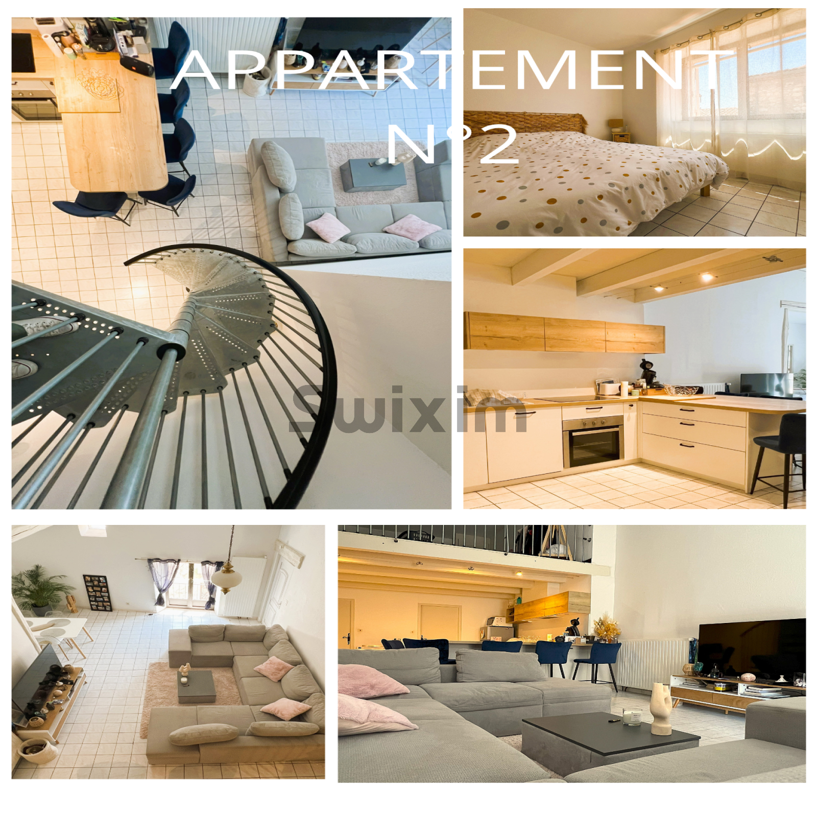 Le second appartement fait 83 m². Il est composé d’une grande pièce à vivre avec un espace cuisine, des sanitaires, un espace rangement et une salle de bains. Au même niveau, une chambre et à l’étage supérieur, une mezzanine pouvant être utilisée comme chambre ou bureau. Cet appartement dispose d’une cave et d’une place de parking couverte.