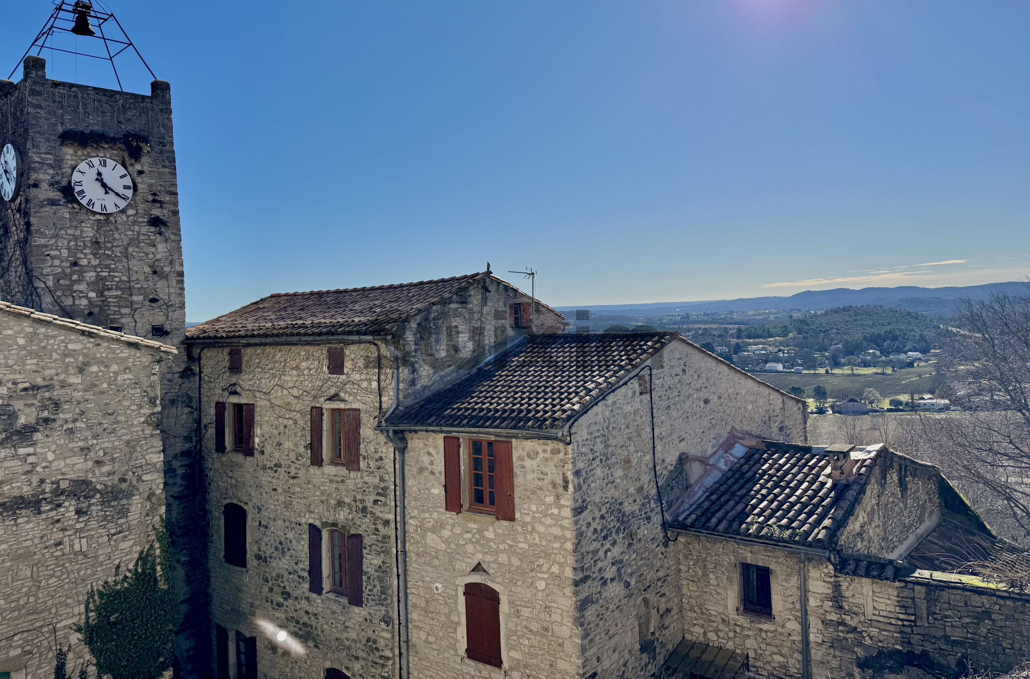 Dans le centre historique du village médiéval de Vézénobres, venez découvrir en exclusivité cette maison en pierre avec sa terrasse exposée Sud et offrant une vue dégagée sur le clocher, la plaine et les collines environnantes.
