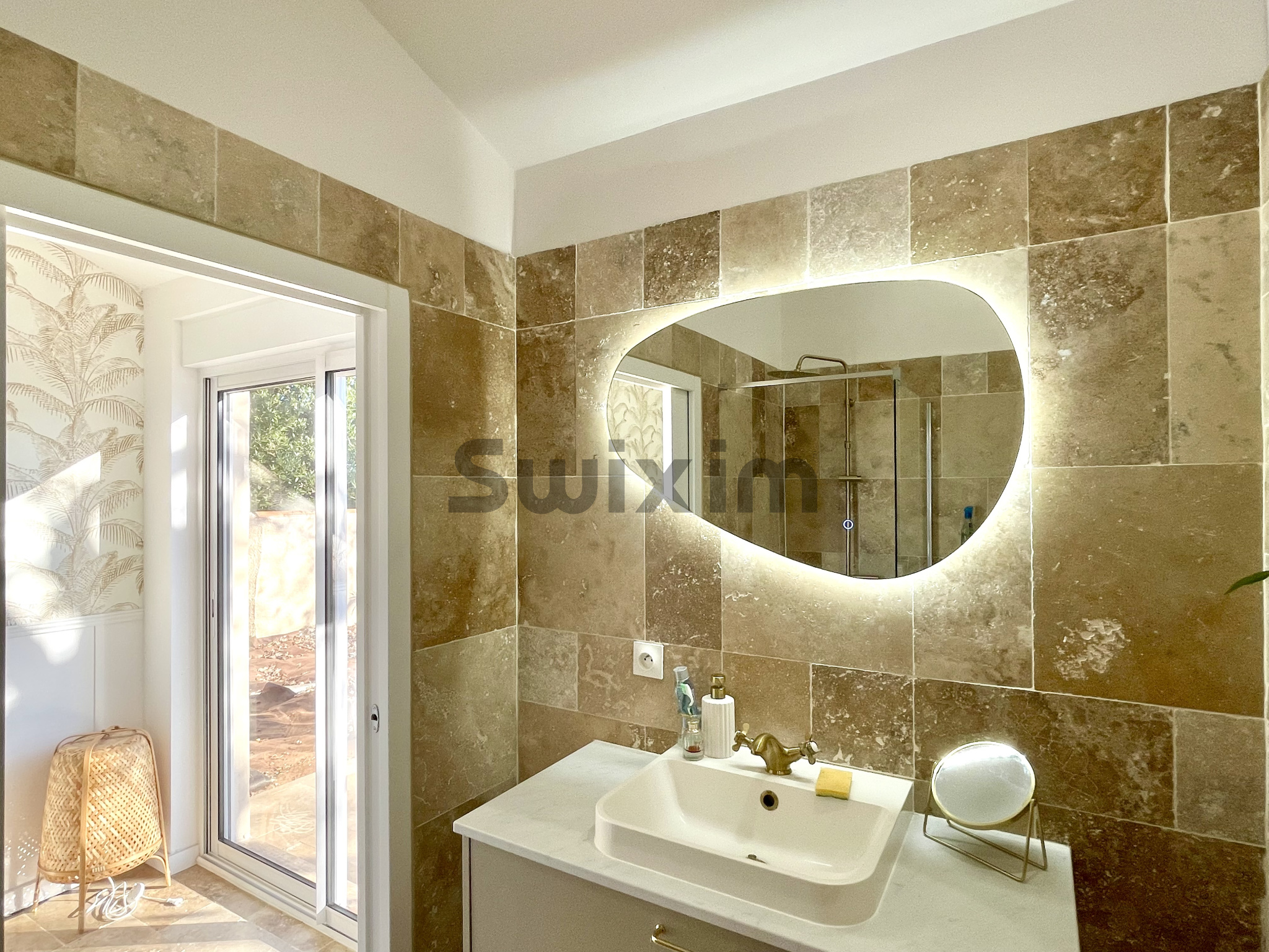 La maison bénéficie de belles prestations, notamment grâce à l’installation d’une climatisation, de menuiseries en PVC et de volets battants en aluminium.