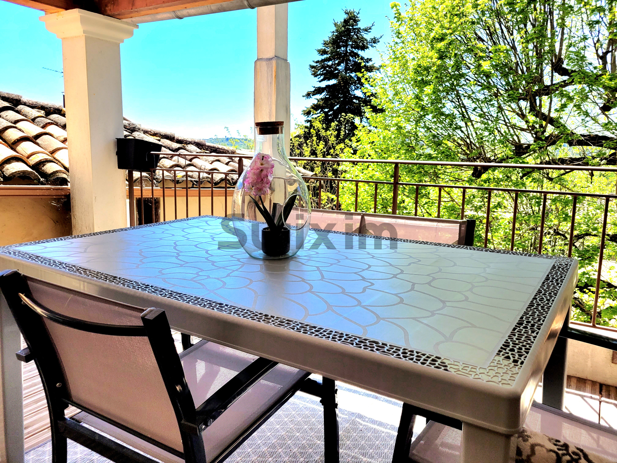 Les terrasses, sans vis-à-vis, offrent une agréable vue dégagée sur les toits et la campagne environnante.