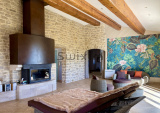 Derrière ses lignes authentiques mêlant pierres et poutres apparentes, la maison dévoile des volumes généreux baignés de lumière. La pièce de vie, sublimée par une belle hauteur sous plafond et une cheminée à foyer fermé Laudel, invite à des instants de convivialité dans une atmosphère chaleureuse et raffinée.