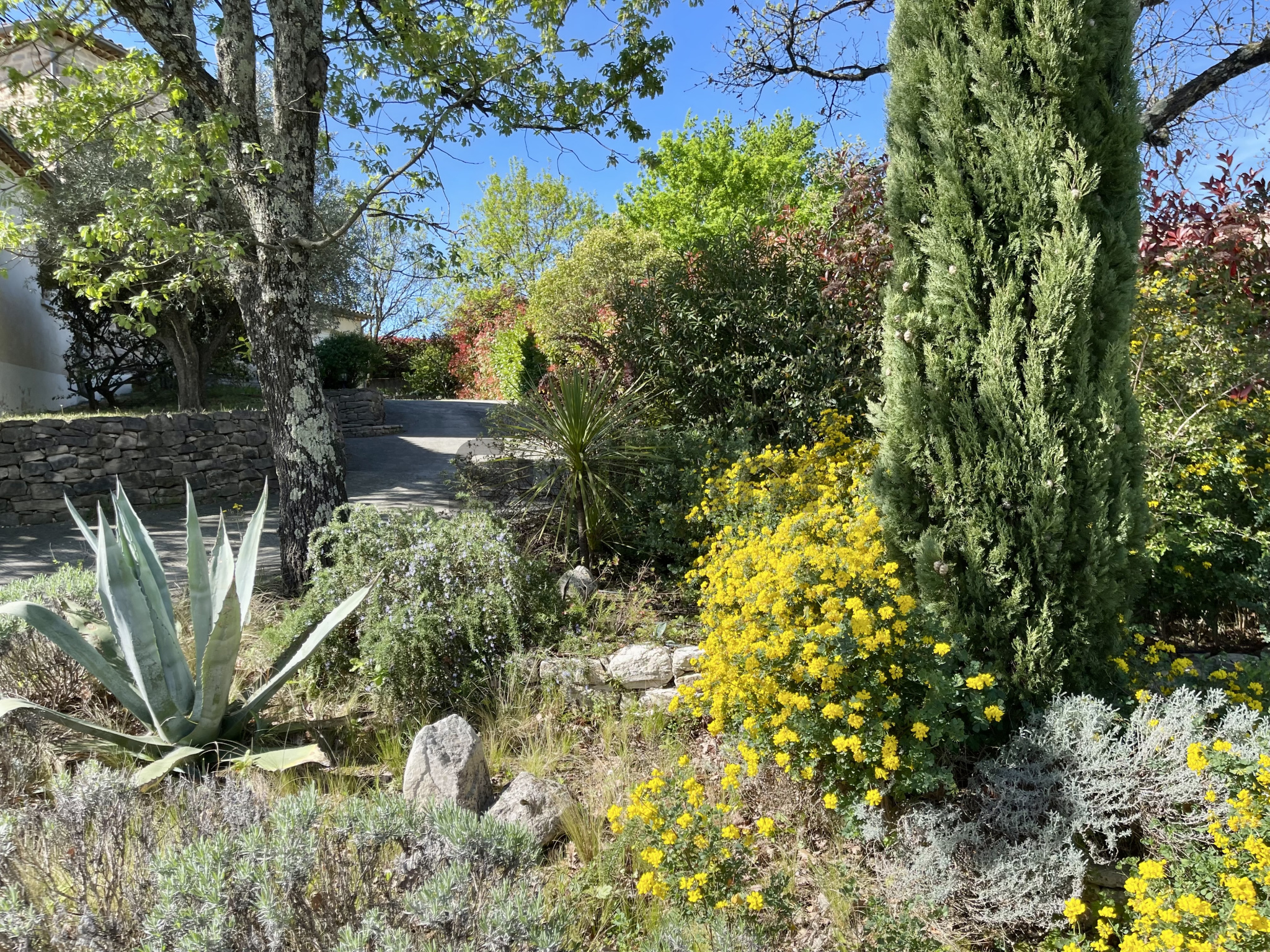 À quelques minutes d’Anduze, au calme dans un écrin de verdure, cette propriété confidentielle incarne avec justesse l’élégance du Sud et l’art de vivre méditerranéen.
